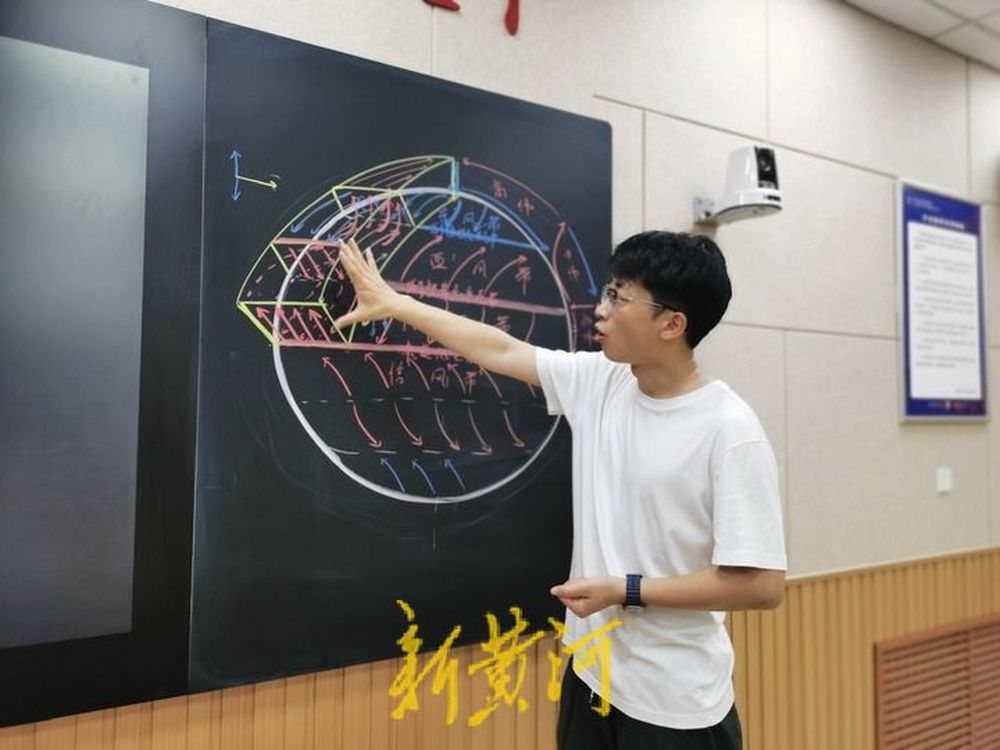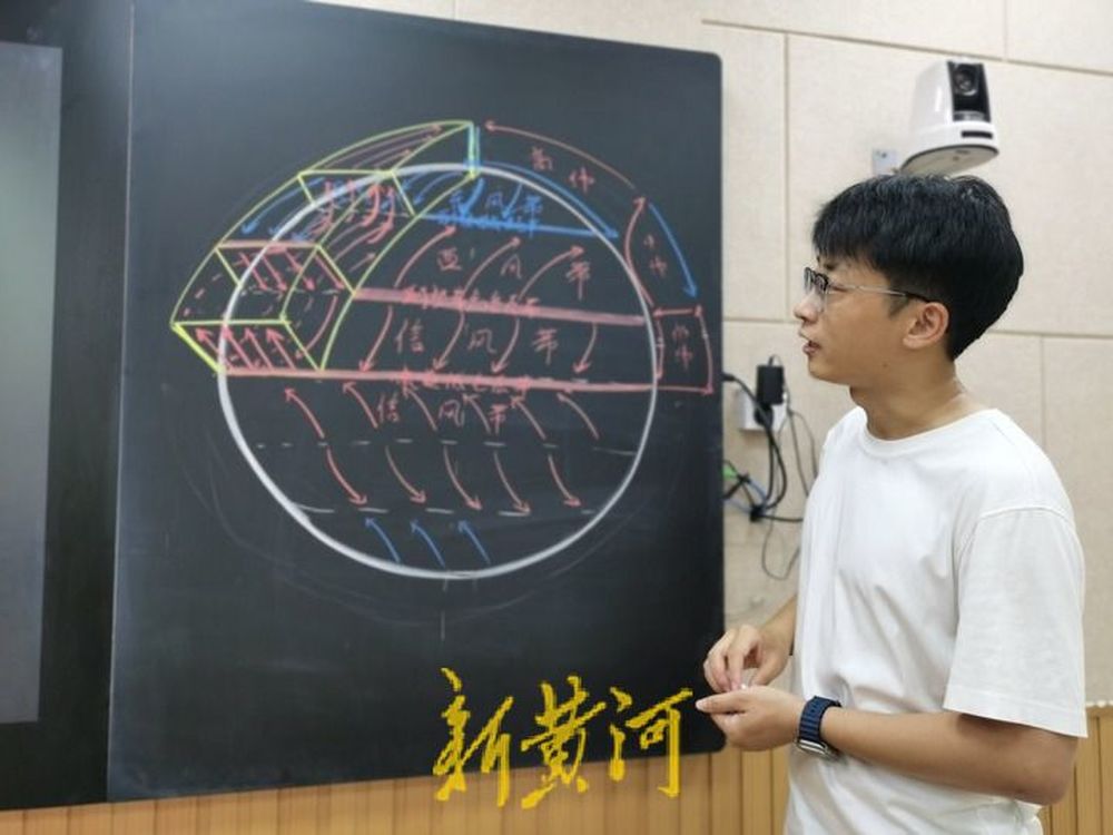 袁晓开始钻研黑板画,要从2022年说起,那是他来到学校任教的第二年。在他看来,用课件上课比较枯燥,学生的课堂参与度和关注度不高,不如用一张图贯穿整个课堂,来提升大家的学习积极性。所以他就一边讲课,一边在黑板上画画,用图画把要讲的地理知识展现出来。在尝试几次后,他发现这种方式效果不错。学生们会跟着他一起画,对知识的理解能力得到显著提升。