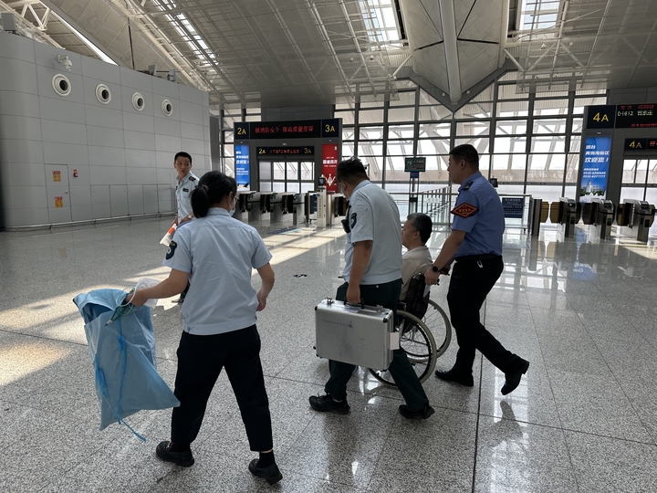 车站客服中心迅速将情况上报。客运值班员赵荣慧第一时间拨打120急救电话,并安排专人前往进站口引导急救人员,确保绿色通道畅通无阻。与此同时,客运值班站长杜潇携带轮椅,提前到达站台旅客所在车厢位置等候列车进站。
