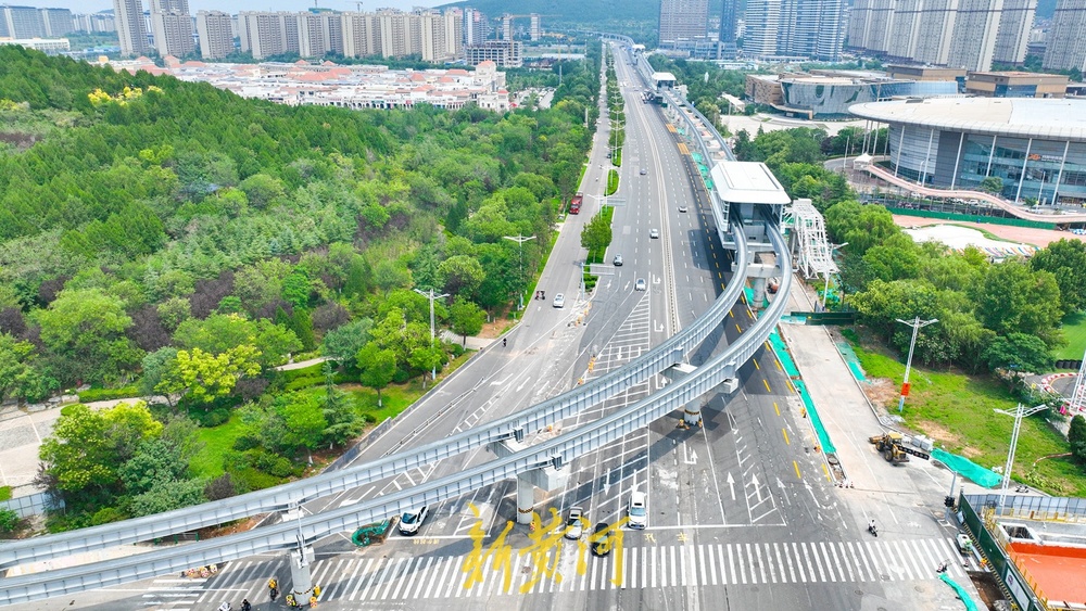 7月10日,记者在济南唐冶中路以东的世纪大道看到,随着济南低运量轨道交通高新东区环线建设的进展,轨道架设已经全部完成,占用地面道路的施工范围逐渐缩小。
