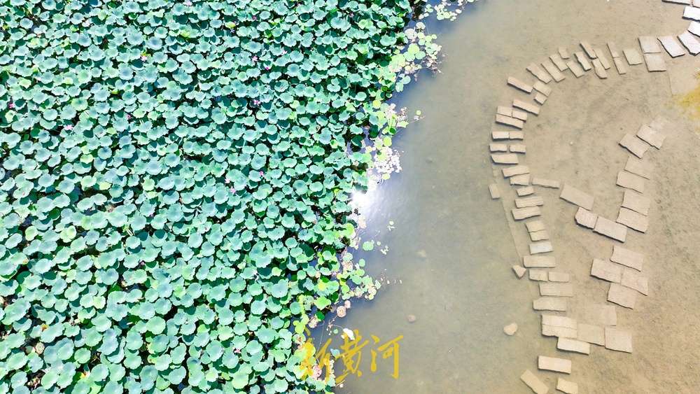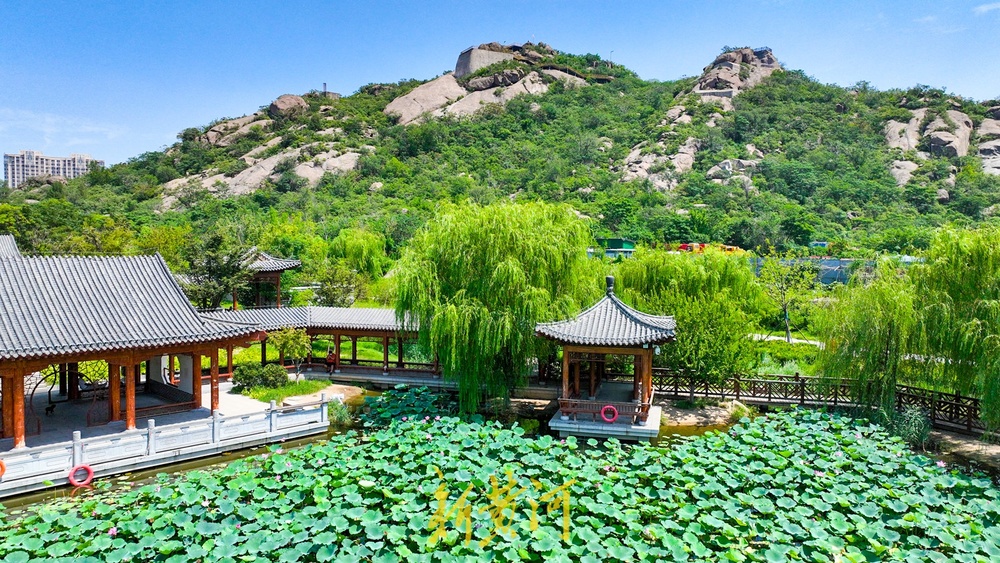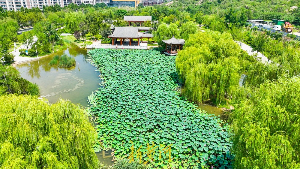 8月7日,济南正值荷花盛开季,记者在齐烟九点之一的药山脚下看到,洋涓湖公园里种植的荷花经过多年的养护已经呈现碧荷连天的美景。