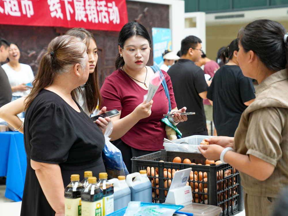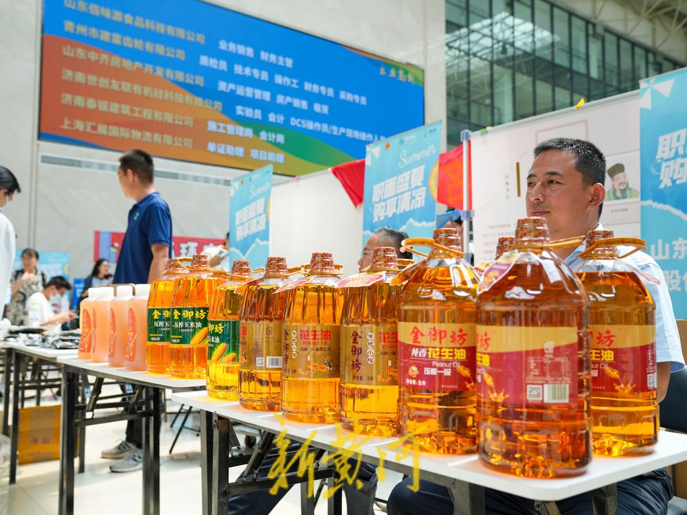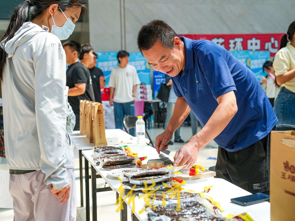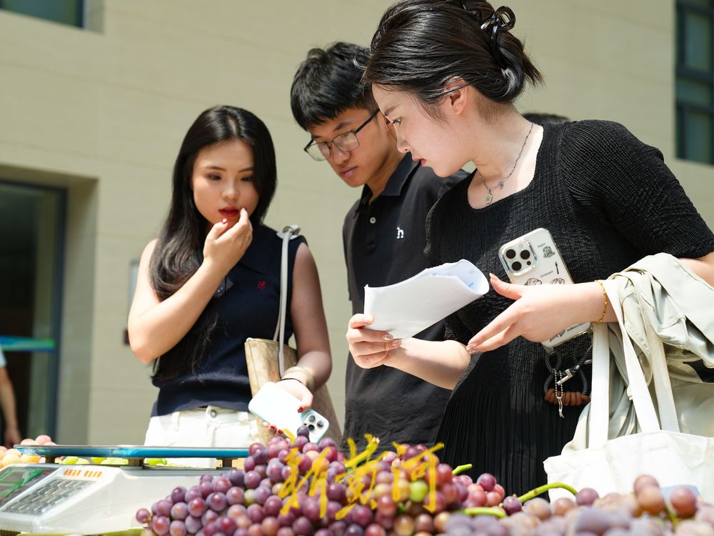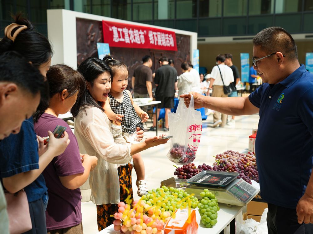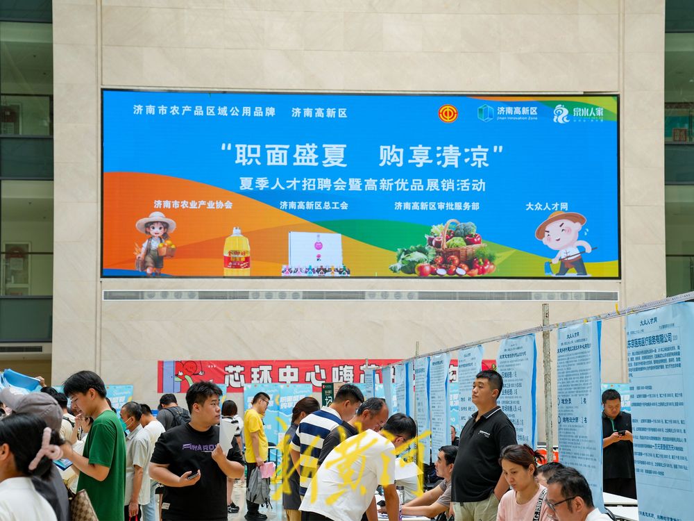 记者在高新区政务服务大厅举办的夏季人才招聘会上看到,“泉水人家”也设立了优质农产品展销区,品种多样、质量保证的农产品深受前来应聘大学生们的欢迎。“我刚参加完招聘,看见葡萄不错,甜、口感好、没有核,我买了3斤,一会儿带回家吃。生活不易,得对自己好点。”今年刚刚毕业前来应聘的大学生小张抬着青春洋溢的脸庞向记者表示。