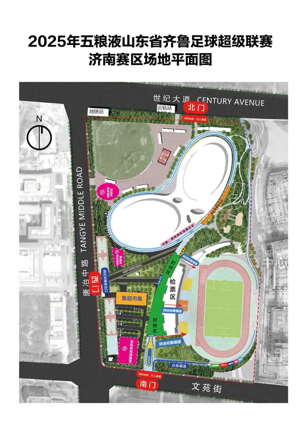为落实大型赛事活动安全保障要求,方便各赛区竞赛组织工作井然有序进行,历城区体育中心场地在比赛日当天暂时不对外开放。为避免交通拥堵,小编建议各位球迷朋友选择绿色出行。若您是非机动车出行,见图1。