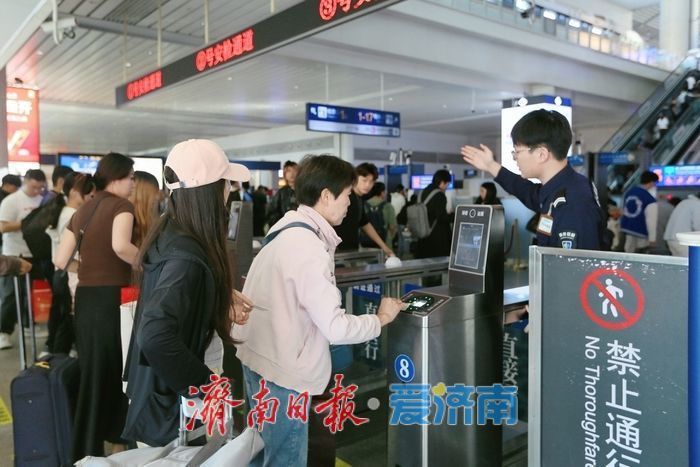 济南三大火车站动态调整票务窗口功能,全面优化换乘流线,及时增派引导人员、合理调整进站安检通道,减少旅客等候时间;加强站台巡视和引导,对客流量大的列车,及时分流,保障旅客乘降顺畅。济南火车站北站房自9月26日开通后,车站开启“南北双向进出站”模式,为旅客带来更加便捷、舒适的出行体验。济南西站对候车室旅客充电设施进行升级改造,改造后共有3处充电站共计30个充电座供旅客免费使用。济南东站在候车室换乘较为集中的8个检票口各增加一台换乘闸机及相应引导标识,助力旅客顺畅换乘。