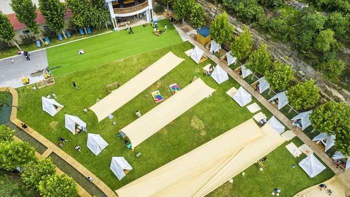 沿着溪流骑行,听着水声潺潺,超级治愈。玩累了,就留在“泉心・星宿”解锁“慢生活”。
