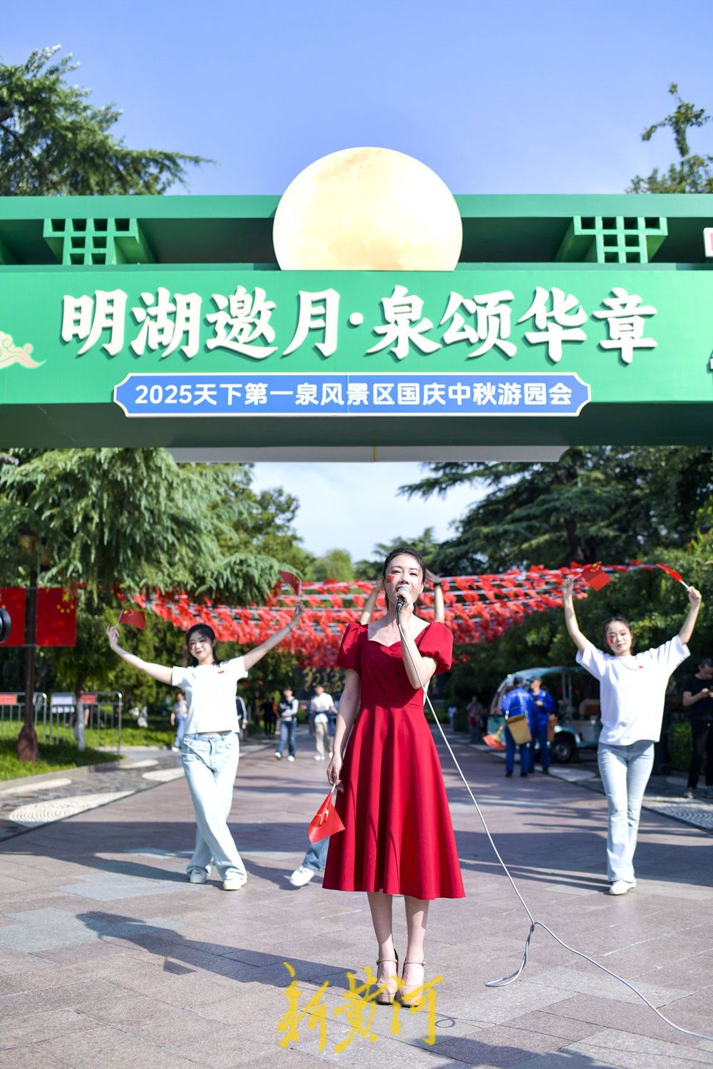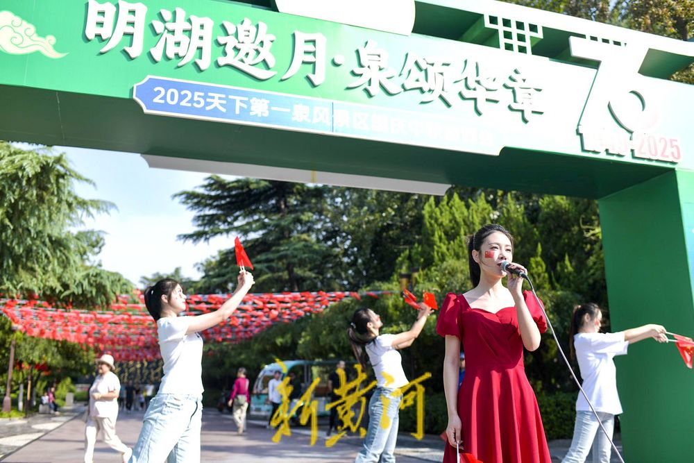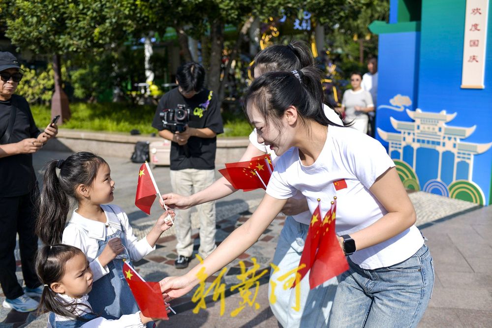 今天是10月1日国庆节,迎国庆主题快闪活动在大明湖公园西南门广场举办。