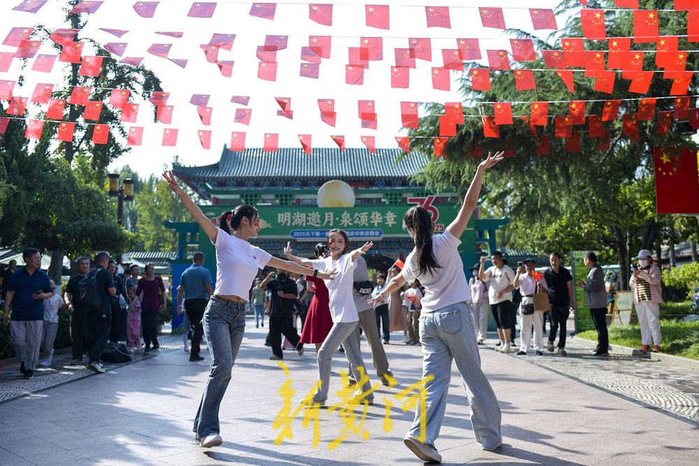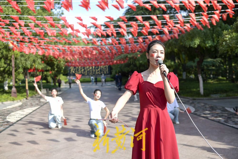 青年人以嘹亮歌声、灵动舞姿与激昂节奏,表达了对祖国的热爱和祝福,以此庆祝中华人民共和国成立76周年。