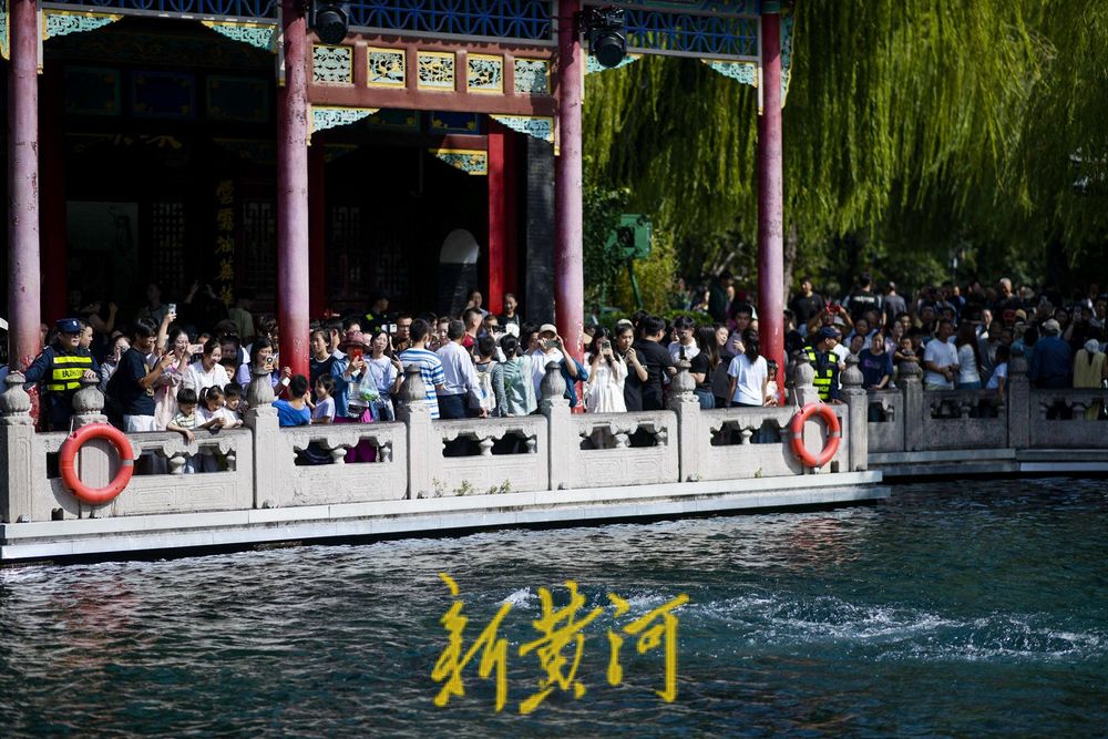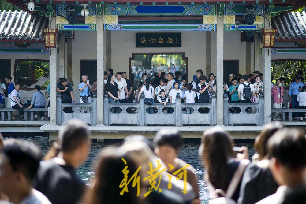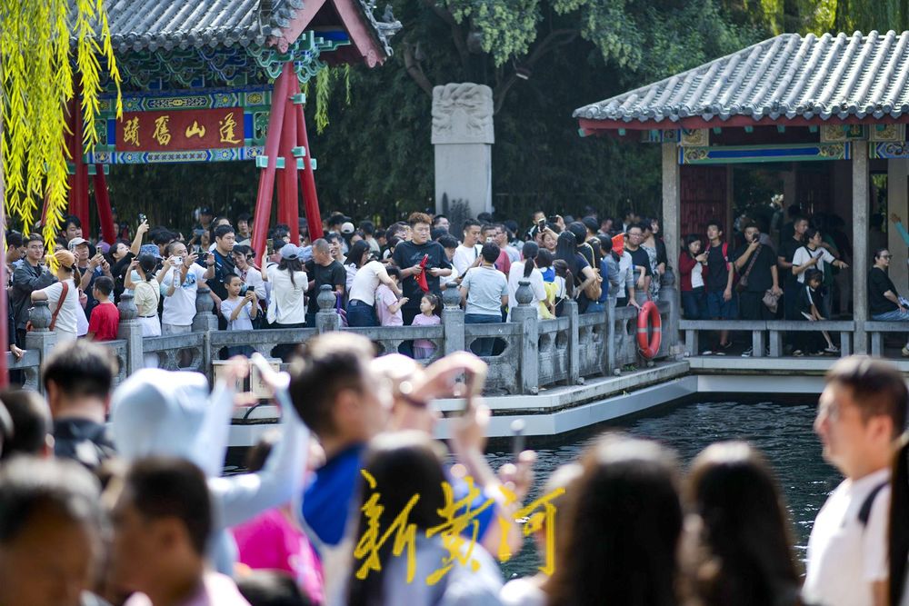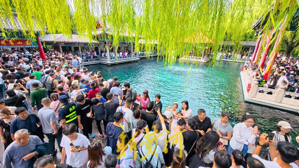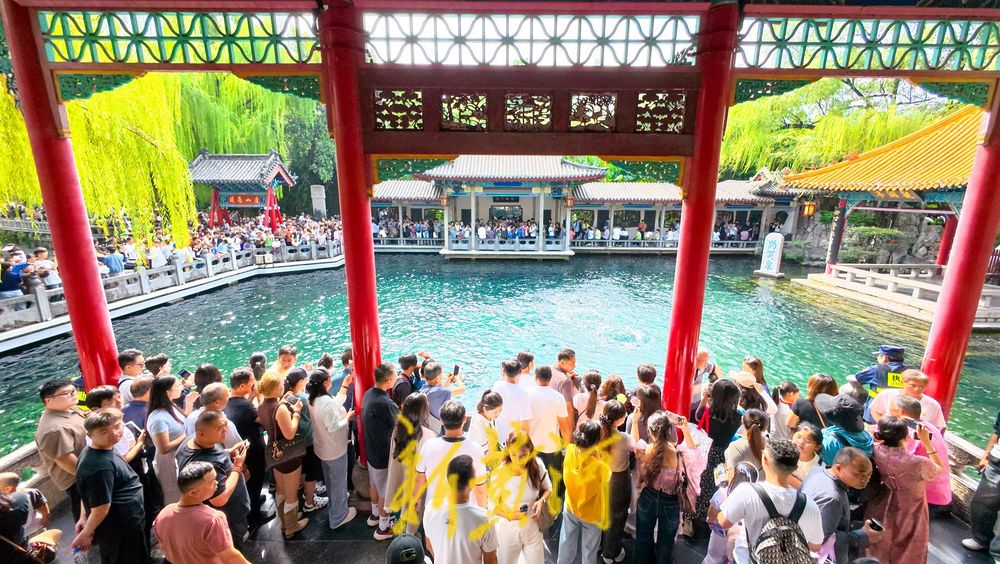 10月1日,国庆假期首日,泉城文旅市场快速升温,趵突泉景区迎来客流高峰,来自全国各地五湖四海的游客齐聚趵突泉,一睹趵突腾空、水涌若轮的风采。现场游人如织,人潮汹涌。