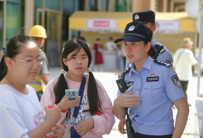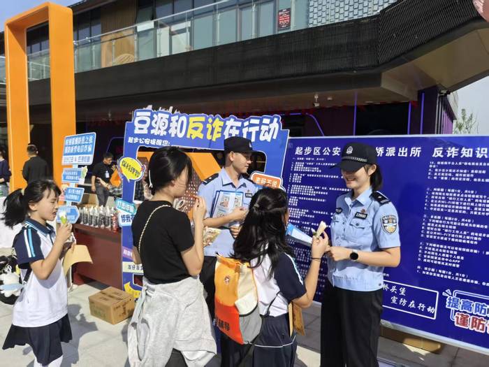 在园区内,起步区公安分局设立了“鹊华卫士”学雷锋服务队宣传点,向游客宣传防范电信网络诈骗、网络安全和交通安全等知识。民警现场向游客提问“反诈”知识并发放奖品,极大地提高了宣传的趣味性。游客们争相参与,在互动中提高了防骗意识。