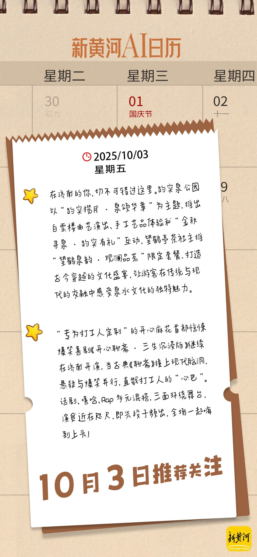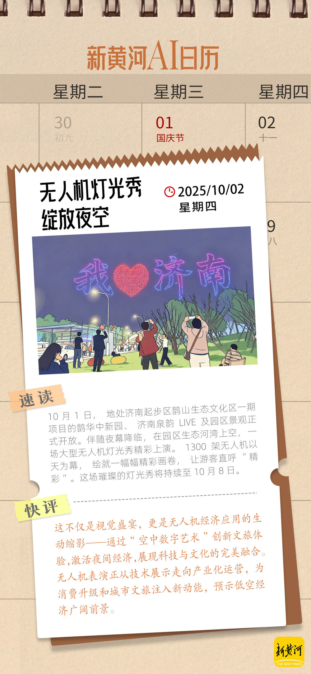 无人机点亮夜空、小剧场爆笑上演,“双节”假期泉城乐无忧|新黄河热榜AI日历