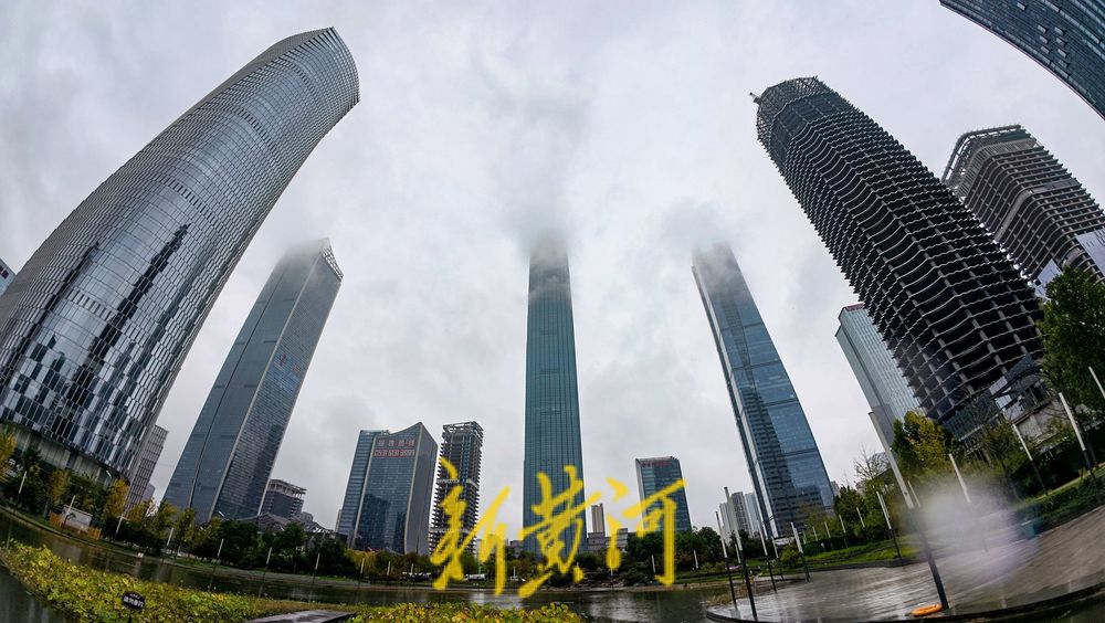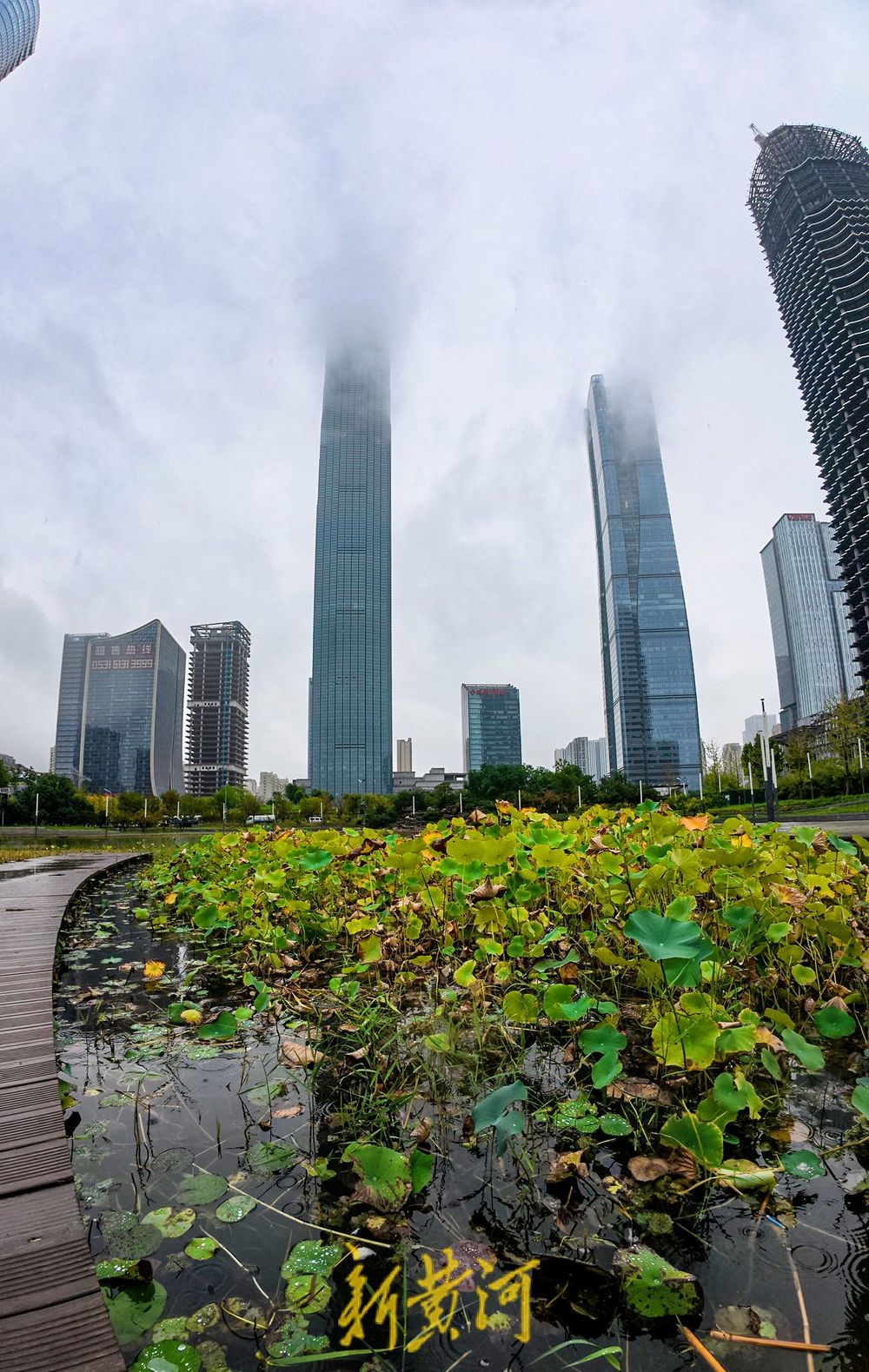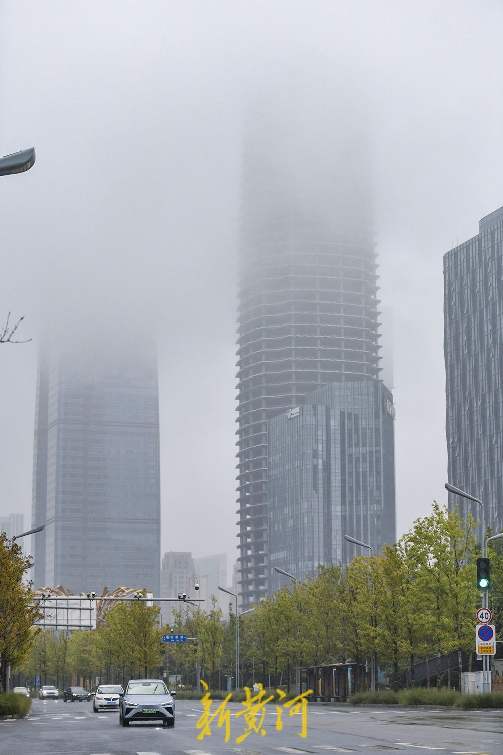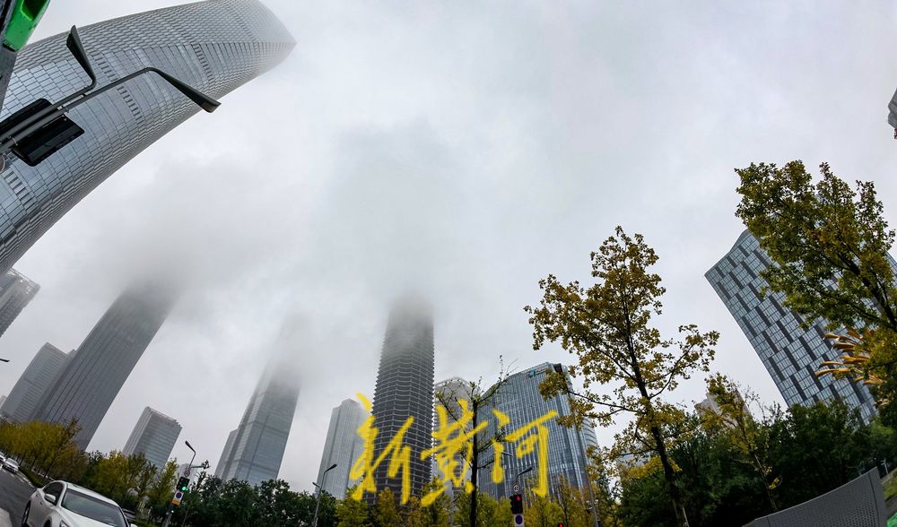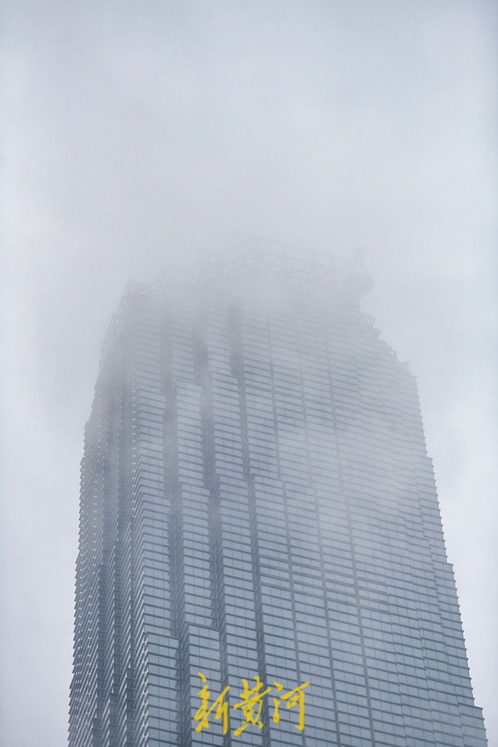 在东部城区的中央商务区,云雾缭绕,一座座高层建筑顶部被云雾遮盖,超高层建筑在云雾中若隐若现,构成了一幅美丽的天然画卷,“仙气”十足。