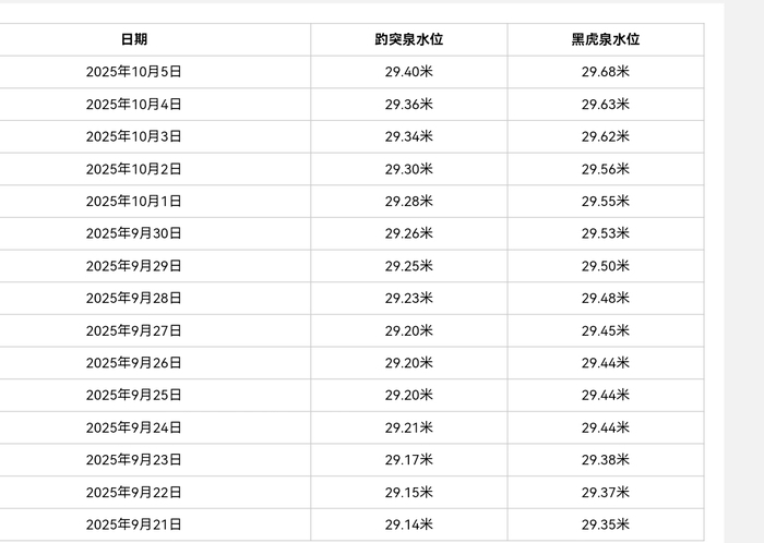 新黄河记者还注意到,10月4日,泉城两大泉群的地下水位在历年同期水位中也“名列前茅”。自2003年趵突泉复涌以来,趵突泉水位位列历史同期第五位,黑虎泉水位位列历史同期第六位。
