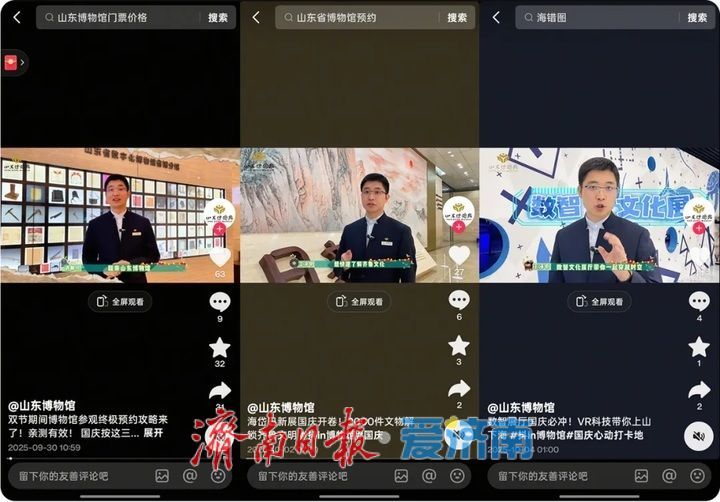 官方平台构建“预告—直播—回顾”传播闭环。节前发布预约指南、活动日历,利用网络直播的形式带领观众云游展厅,实时互动解答观众假期参观疑问,假期推出“云游鲁博”系列短视频,在云端带领观众沉浸式漫游精彩展览,感受文物背后的历史温度。