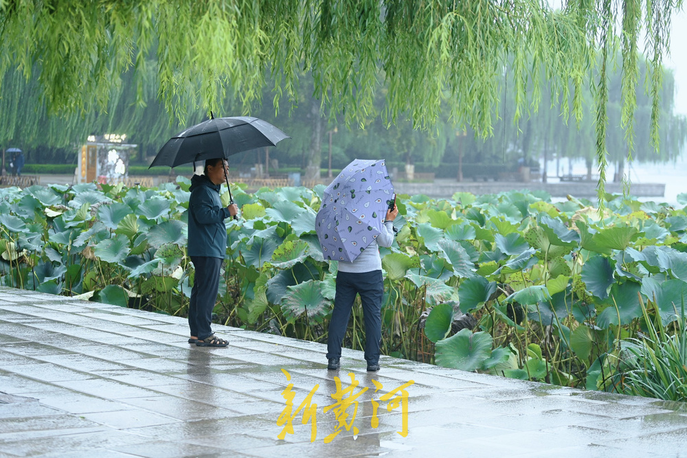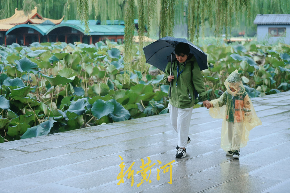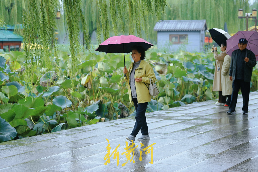 10月10日,泉城秋风萧瑟,细雨蒙蒙,大明湖畔硕大的荷叶已渐渐变黄,虽然少了荷花烂漫时的满池清香,但秋韵十足,游人撑着各色雨伞漫步于浸润在烟雨中的大明湖畔,别具一番风情。