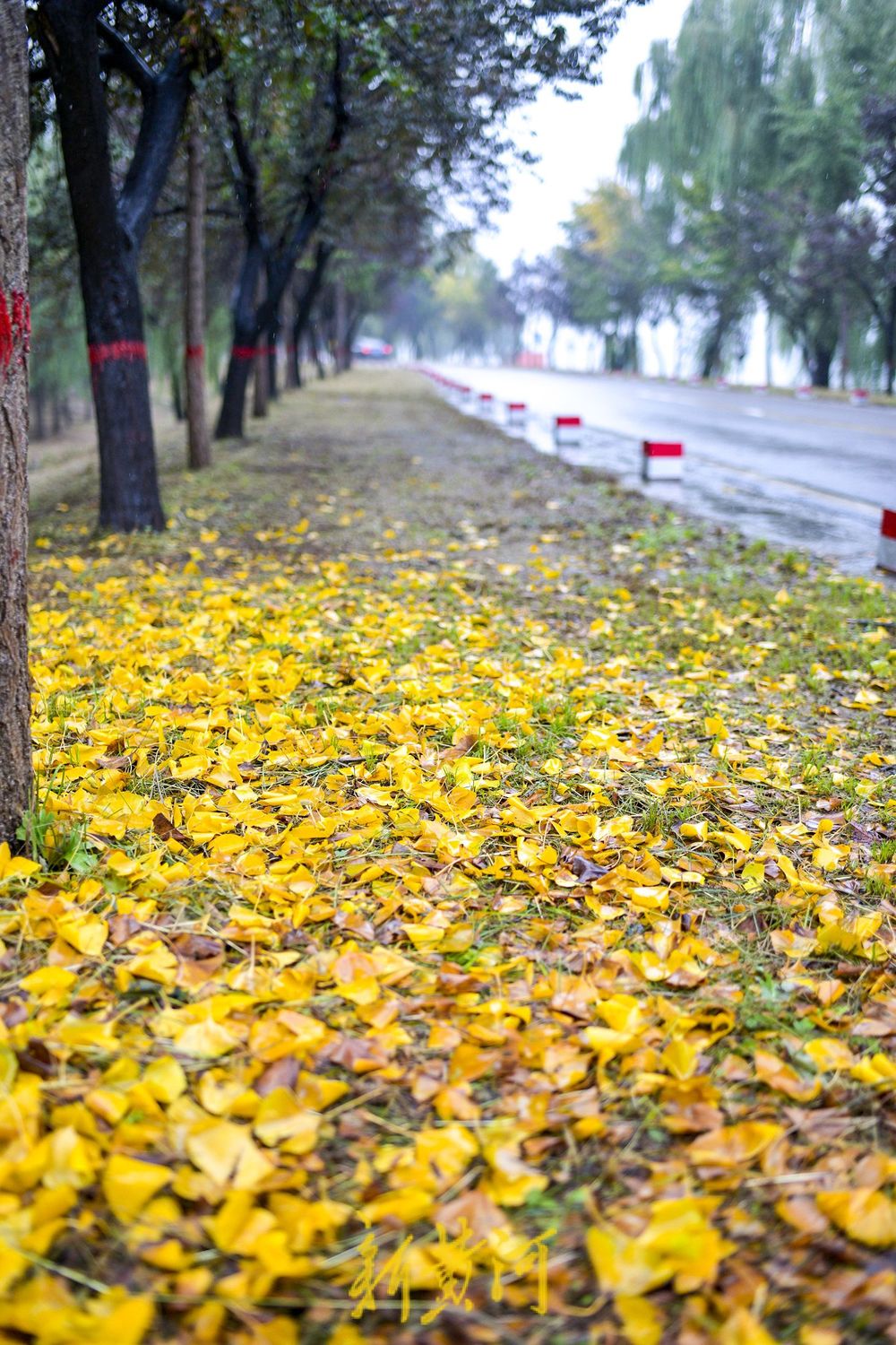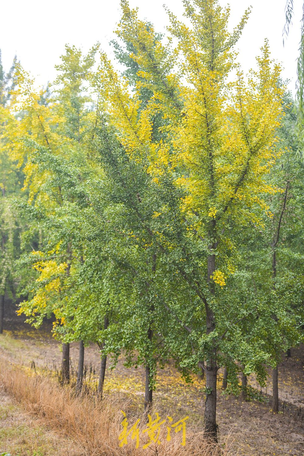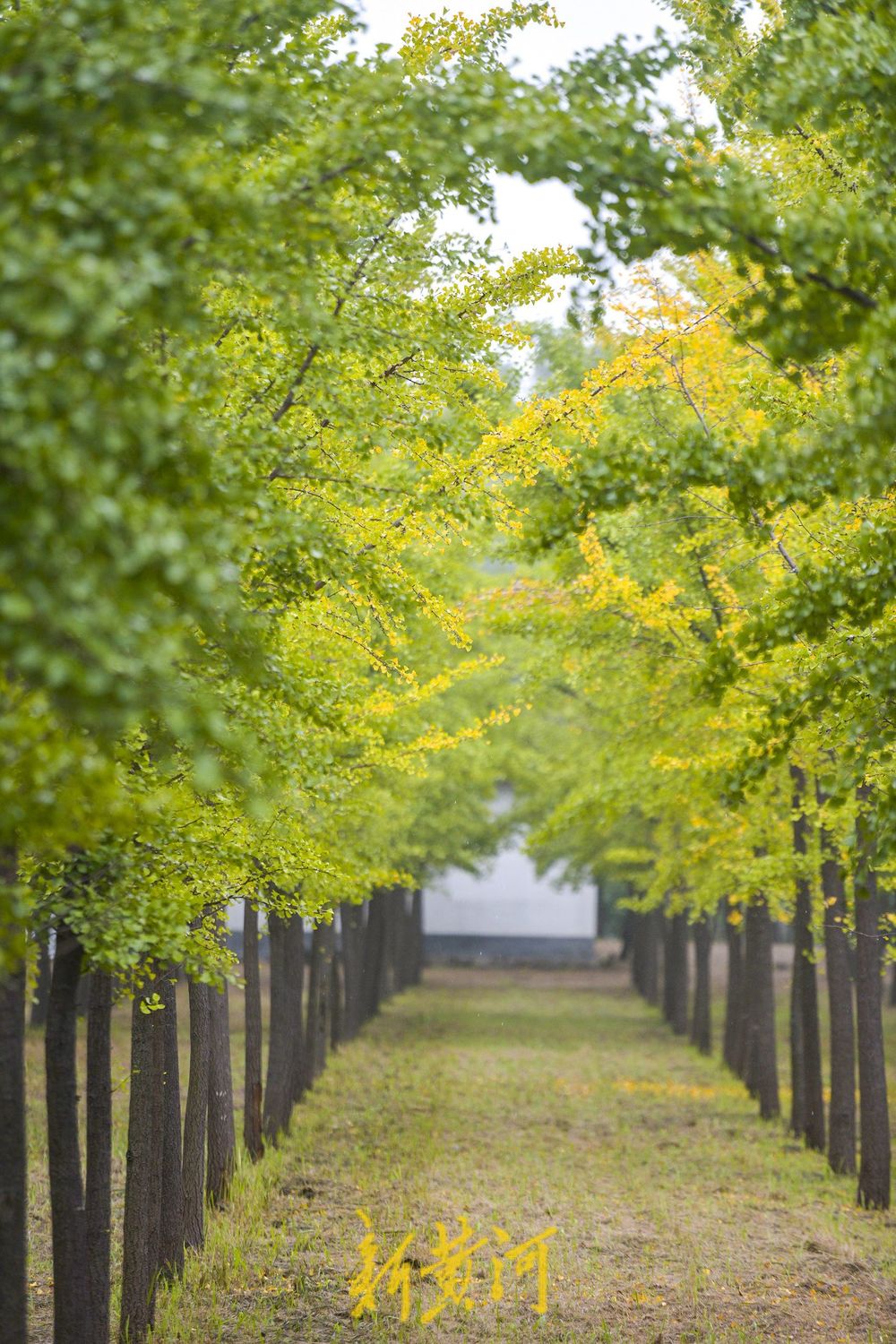 10月10日,泉城持续阴雨天气已经超过一周的时间,气温也持续走低,深秋的气息扑面而来。在济南百里黄河风景区内堤防南侧千亩银杏林,受低温天气影响,不少银杏树的树叶已经变黄,随风飘落满地,提前迈入了深秋赏叶“黄金期”。