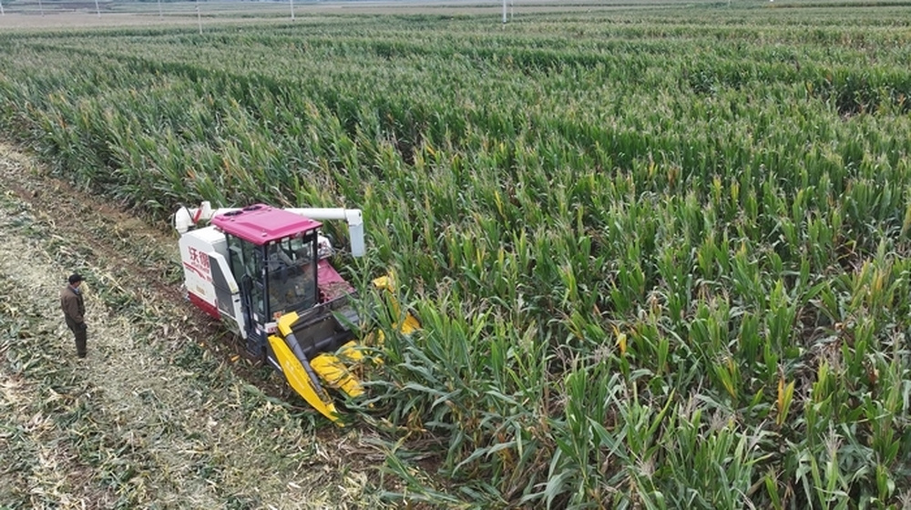 自购履带式农机,济南这位种粮大户帮附近村民抢收玉米
