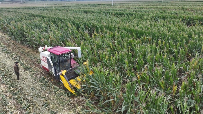 焦广富是孝直镇闻名的种粮大户,承包了2300多亩土地,有着丰富的小麦和玉米种植经验。每年10月份,是玉米收获的时间,他总会提前一个月关注天气情况,今年也不例外。“我9月份看天气预报的时候,发现有连续降雨,到时候地里泥泞,轮式收割机肯定无法作业。当时通过村里联系到安徽,订购了2台履带式收获机。”他告诉新黄河记者,因为今年北方下雨的地方比较多,这种履带式收获机卖得特别火,都快断货了。