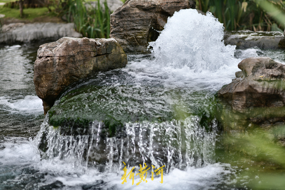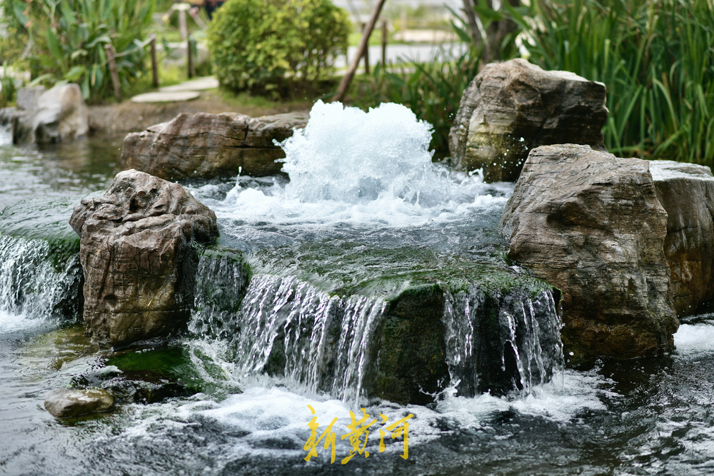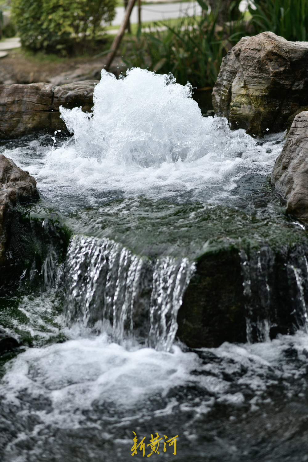 16日上午,在白泉生态保护区内,清澈的泉水自假山石中央的泉口喷涌而出,喷涌高度近半米,水流沿石壁倾泻形成层层叠瀑,再现“石涌清泉玉作帘”的生态美景。