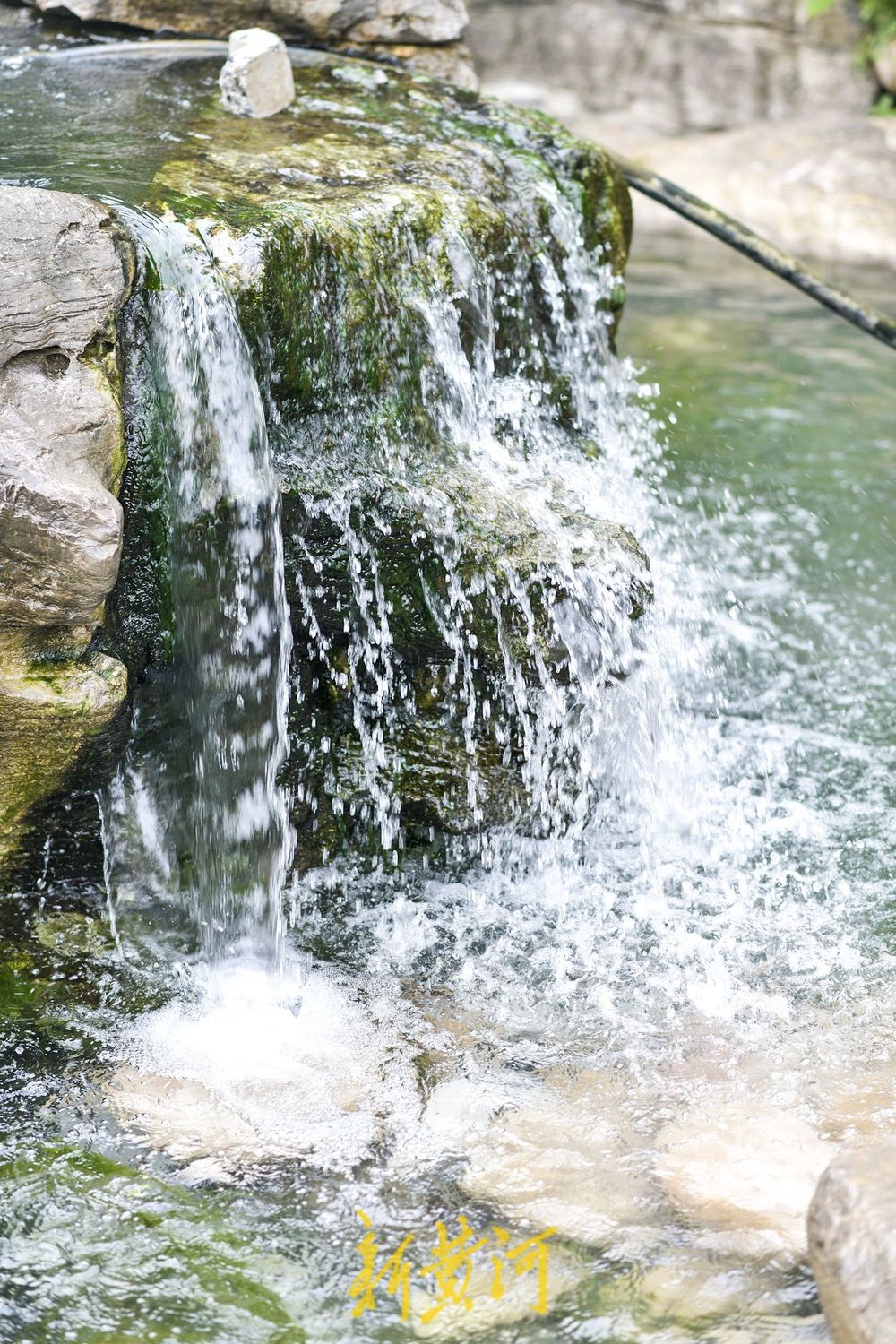 泉池中央的假山上,泉水奔涌而下,在石壁上撞击出雪白的水花,潺潺水声不绝于耳。