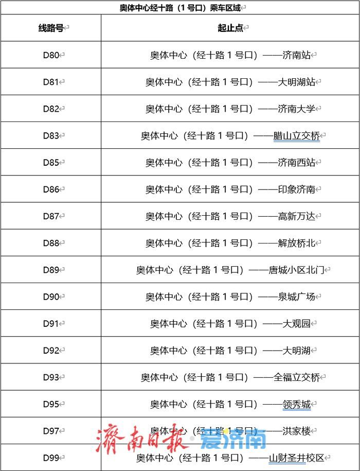 线路1:大明湖公交站——奥体中心体育场(柳康路)