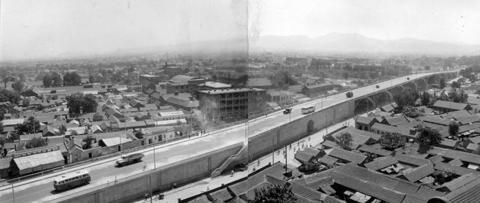1975年,天桥通车,站在天桥桥顶,当时济南城风光一览无余。(胡明摄)