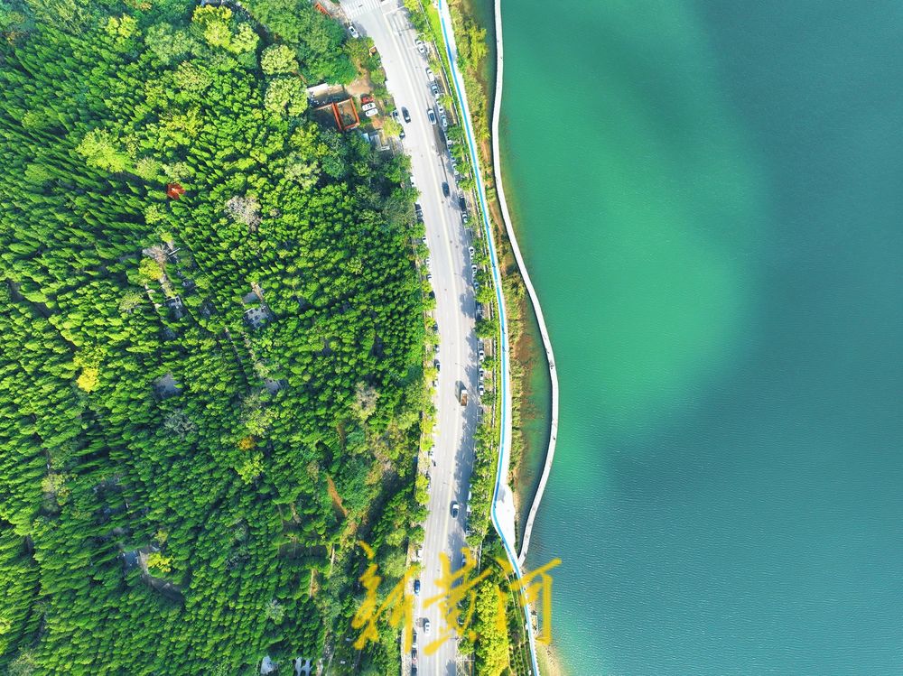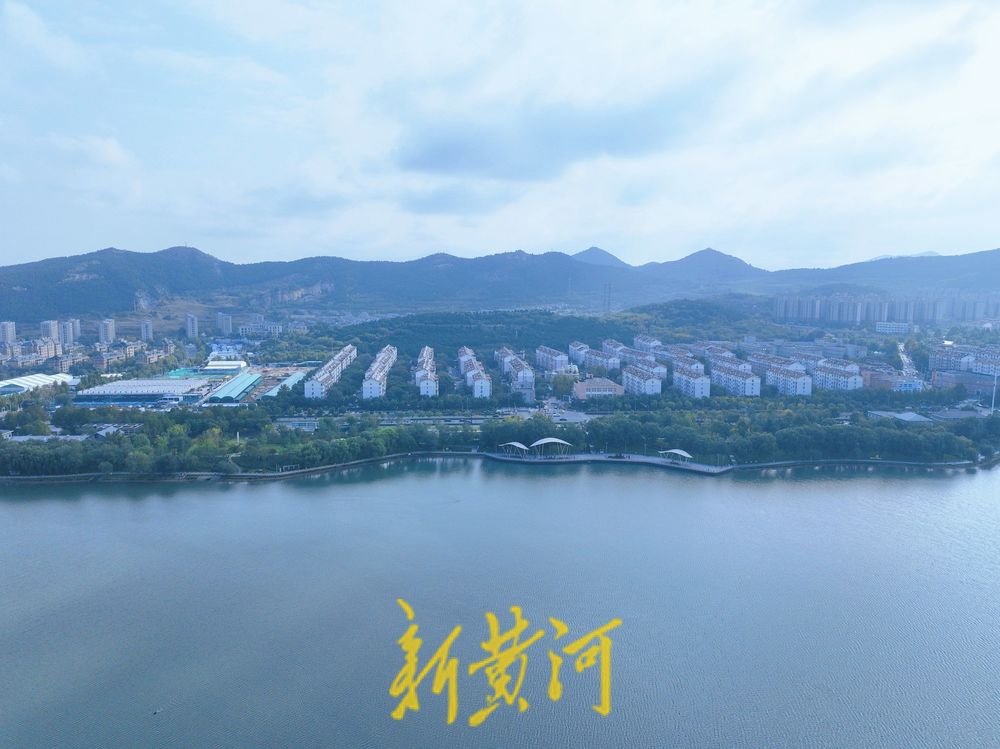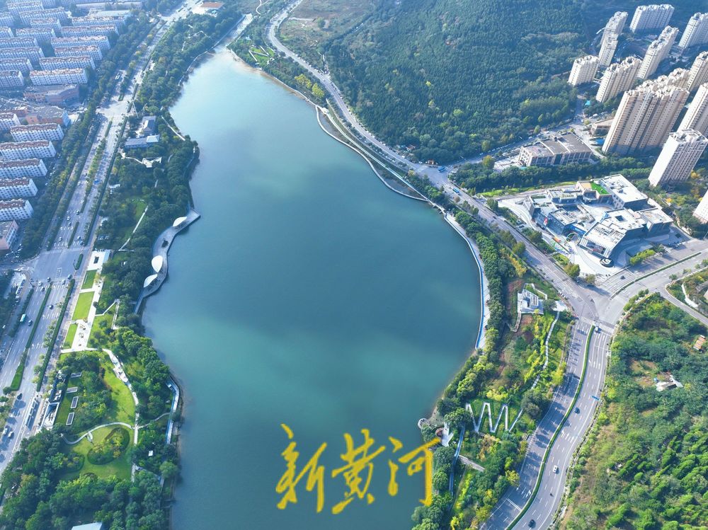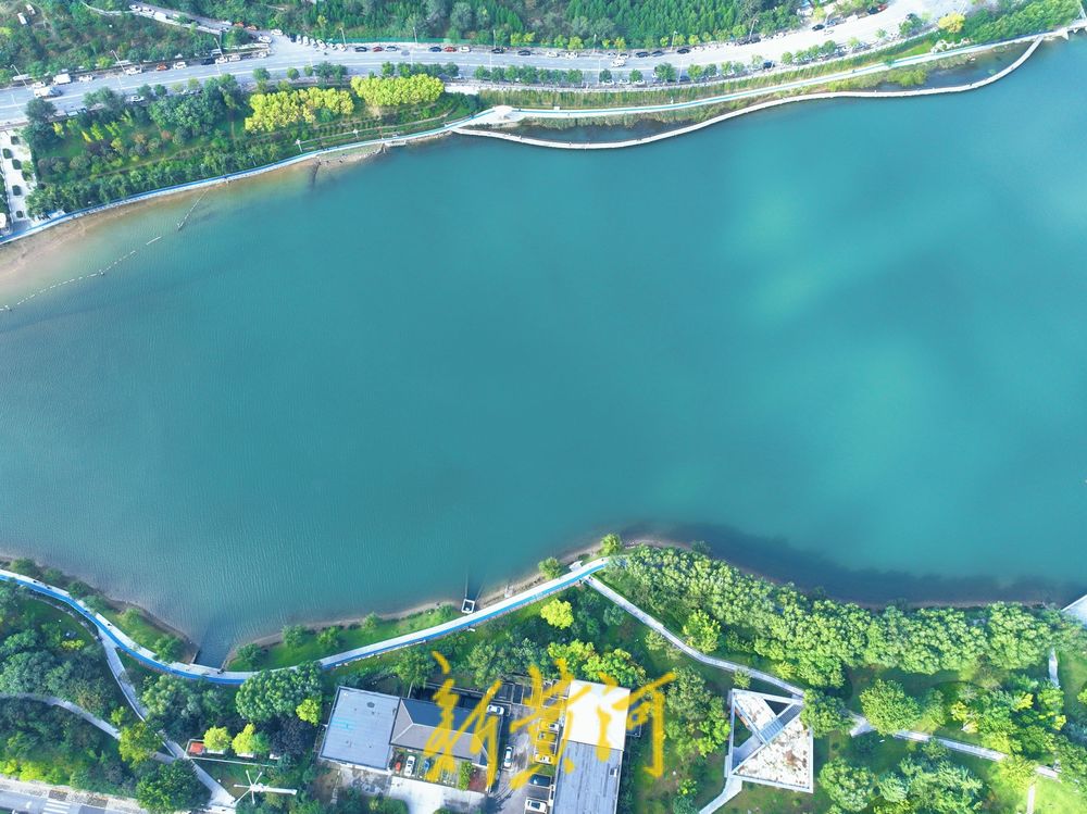10月18日,泉城结束降雨,清晨雨后初霁,龙鼎滨水公园波光潋滟,湖中蓄水量充足,与翠绿的树木相映成景,构成一幅秀美的城市山水画卷。