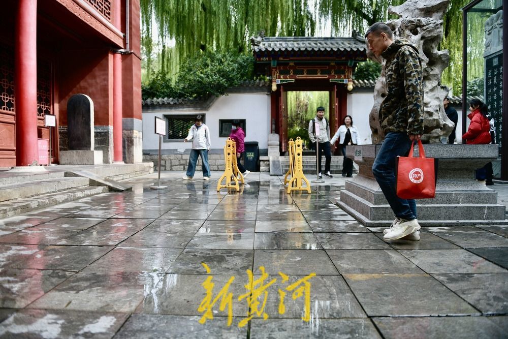 记者在紧邻趵突泉泉池的娥英祠看到,多个石板缝隙里冒出股股泉水。