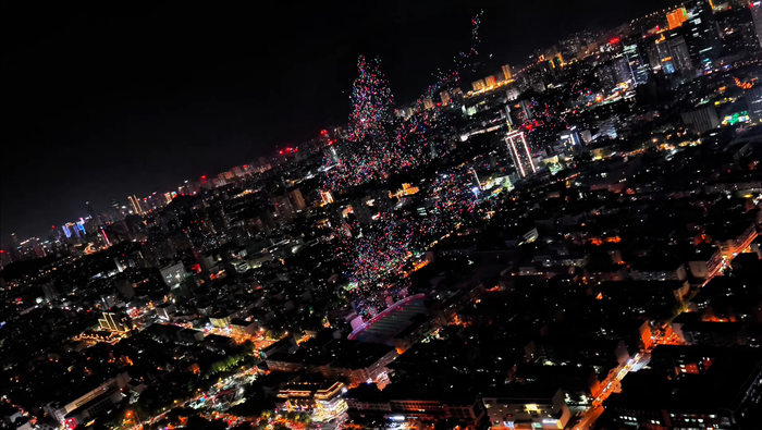 △2025济南国际泉水节无人机表演结束时“银河落九天”的场景