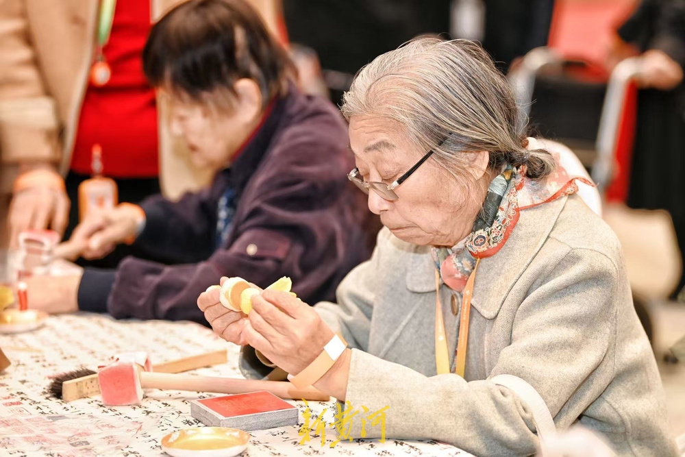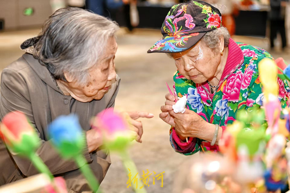 傍晚时分,杜日映和夫人结束了一天的活动,准备回房休息。在四号楼的活力大厅里,重阳节游园会刚刚落幕,面塑草编传统手艺人的展位前还有长者在流连忘返。
