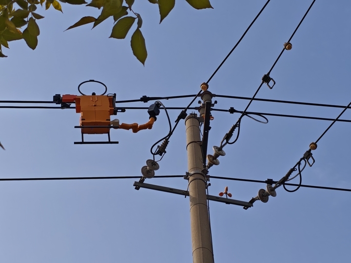 该装置是依托国网济南供电公司2025年职工创新联盟联合攻关项目研发,具备全自动上下线、远程遥控剪除异物、控制引流线头摆动和移动、切断悬空引线头等功能。利用该装置能够省去烦琐的绝缘遮蔽步骤,作业模式由“4人+1车”减少为“2人+1平台”,充分显现了人工替代在智能化作业方面的优势。