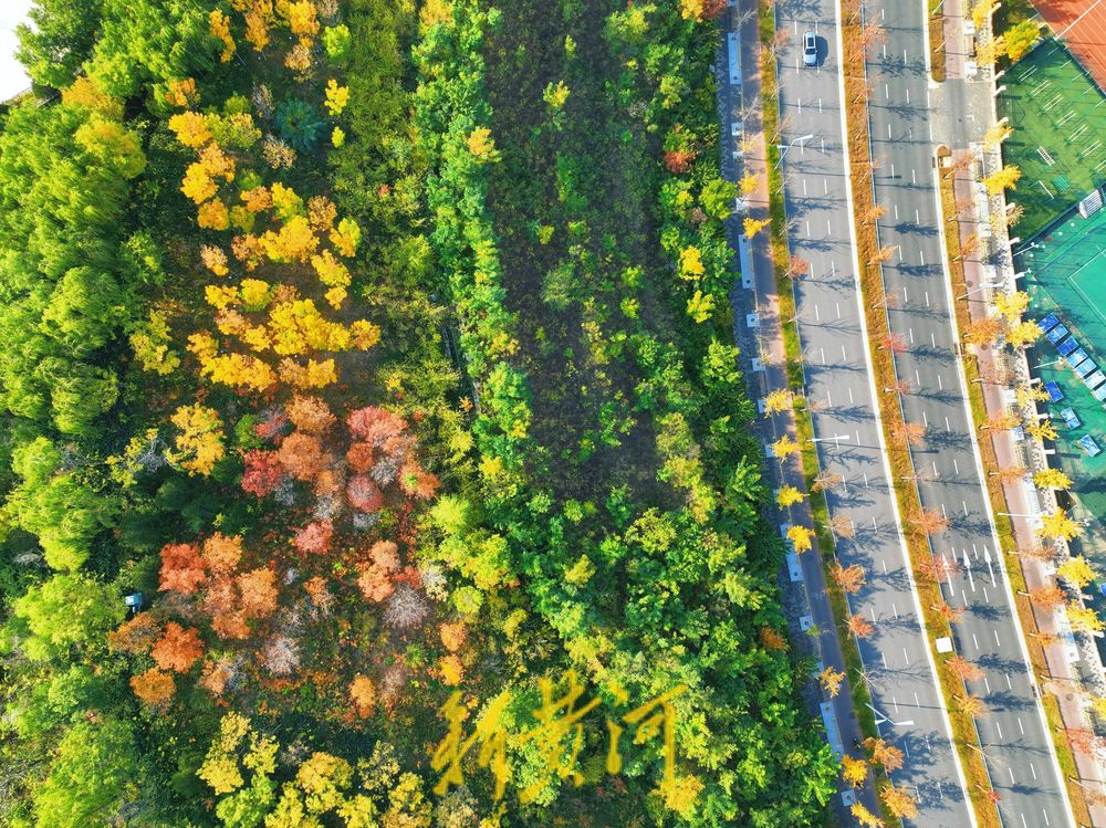 11月3日,深秋时节的济南茂岭山公园迎来一年中最绚烂的秋色,漫山遍野的林木披上红黄交织的彩衣,在秋阳映照下如诗如画。高空俯瞰,层林尽染,宛如打翻的调色盘,目之所及,皆是色彩的盛宴。