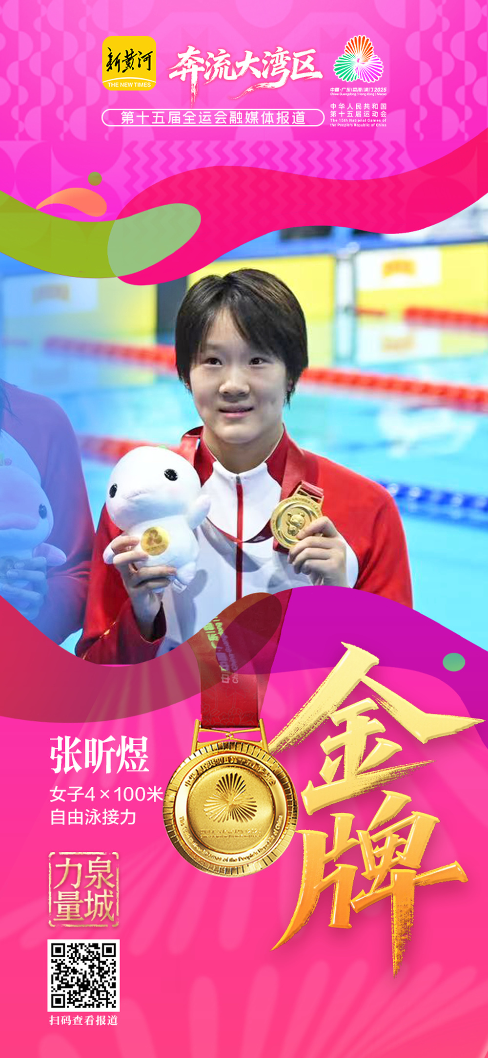 11月10日,在深圳大运中心游泳馆内,女子4×100米自由泳接力决赛战幕拉开。济南籍选手张昕煜、李欣泽与山东队友组成的接力队,在历经上午预赛与晚上决赛的双重考验后,最终以强势表现斩获金牌。