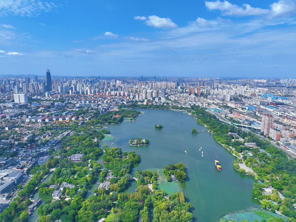 记得那天高铁刚驶进济南西站,车窗缝里钻进来的风就和别处不一样。不是城市里混着汽车尾气的燥热,而是裹着水汽的凉,还带着一点点说不出的清甜。往窗外瞧,连片的绿铺得满当当,不是公园草坪那种修剪得齐整的绿,是野趣的、鲜活的,像宣纸上没蘸够墨的笔,轻轻一晕就漫开了。同座的济南老师见我盯着窗外看,笑着拍我胳膊:“这是泉水润出来的绿!咱济南啊,可是‘家家泉水,户户垂杨’的主儿,等会儿带你去尝尝泉水的甜。”