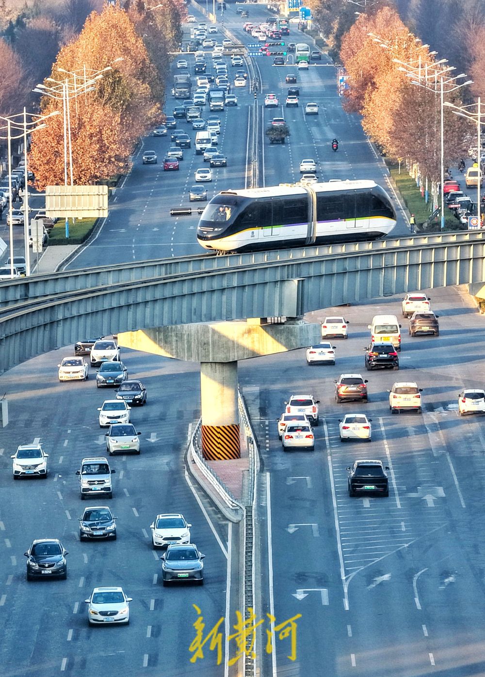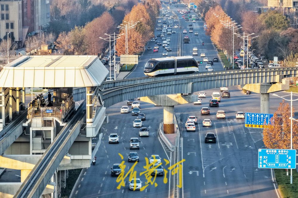 济南云巴全线采用高架方式敷设,经高新区和历城区,串联唐冶、孙村、两河、庄科四大片区,设站32座,拥有完全独立的路权。这意味着,它不受地面交通影响,准点、高效地解决沿线居民和企业职工的通勤难题。