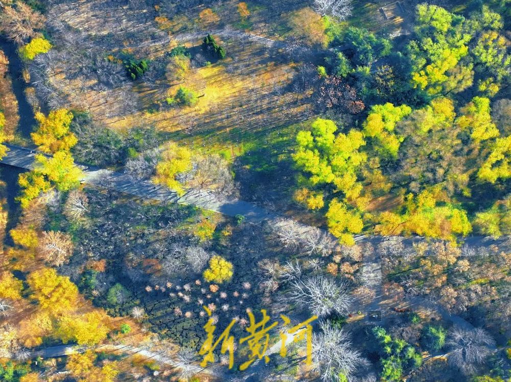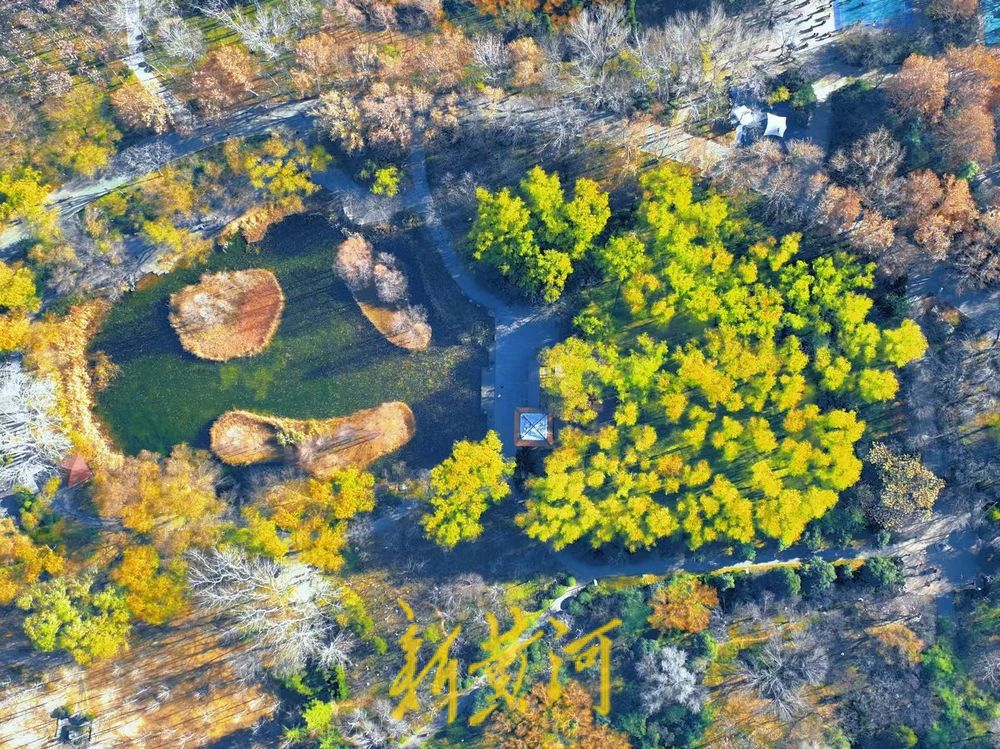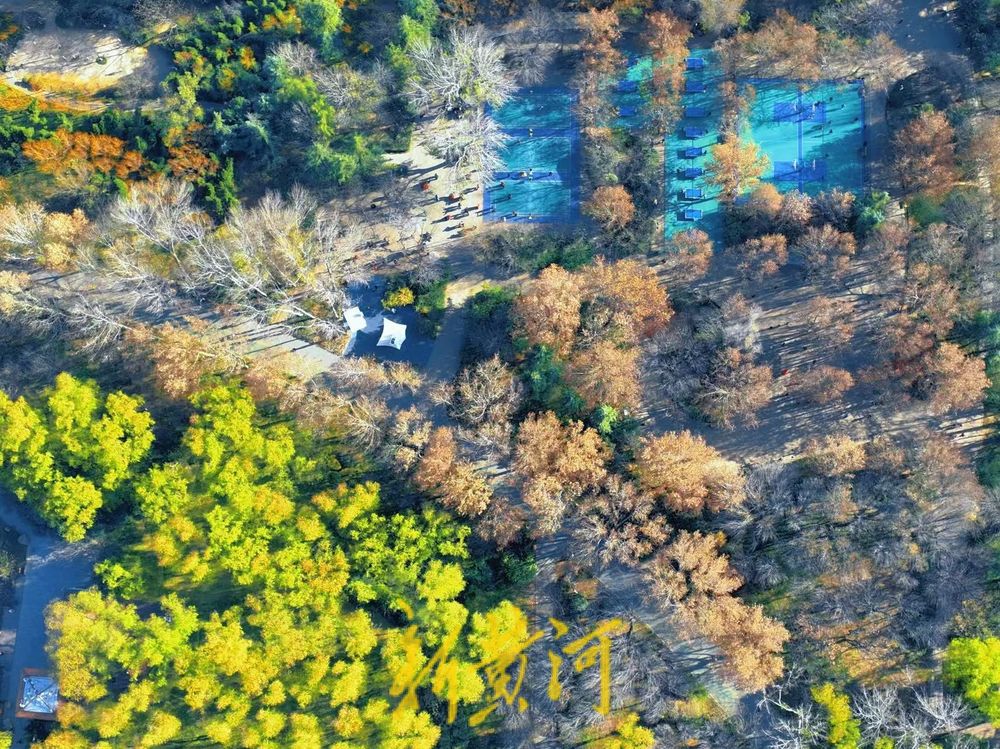 大雪节气过后,泉城正式进入仲冬时节,济南森林公园大片树木依旧绚丽多姿。