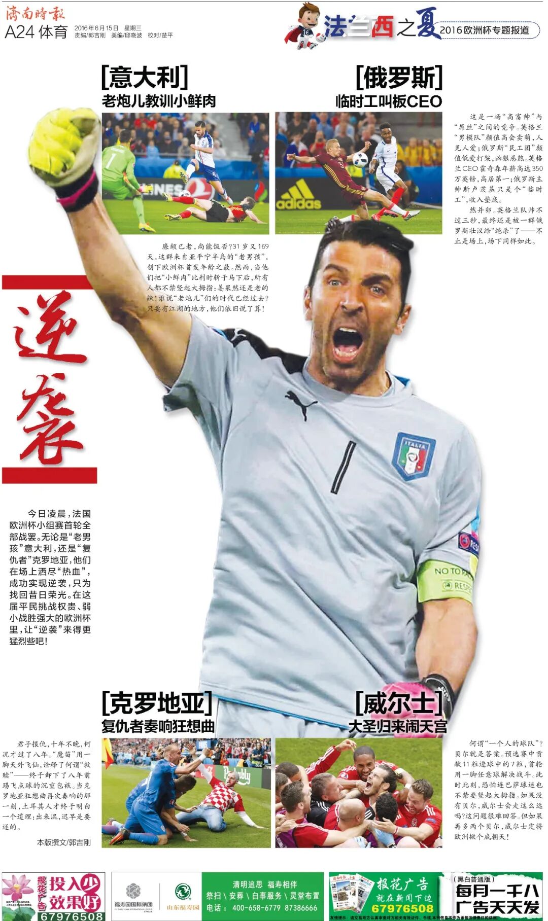 不仅是每周的《时报体育》,从1998年法国世界杯开始,济南时报就从未缺席过任何一次国际国内大赛:奥运会、亚运会、全运会、世界杯、亚洲杯、欧洲杯……一方面派出特派记者到前线进行第一手采访,一方面推出时报体育赛事特刊,集前后方力量为读者奉献充满现场感、冲击力、互动性,有着专业前瞻和深度分析的报道。