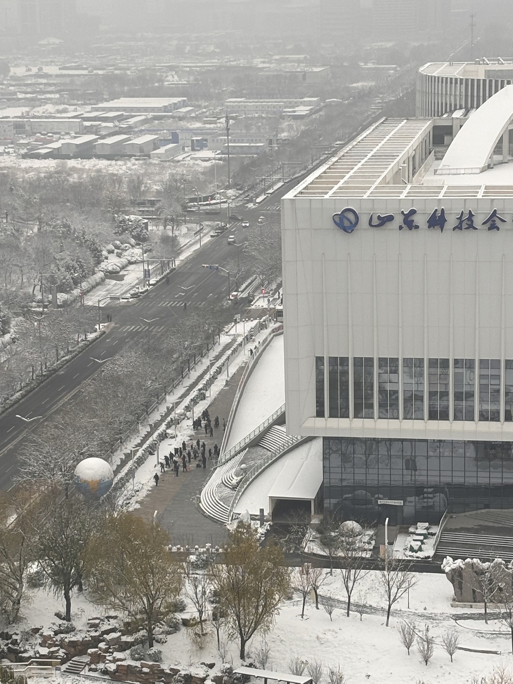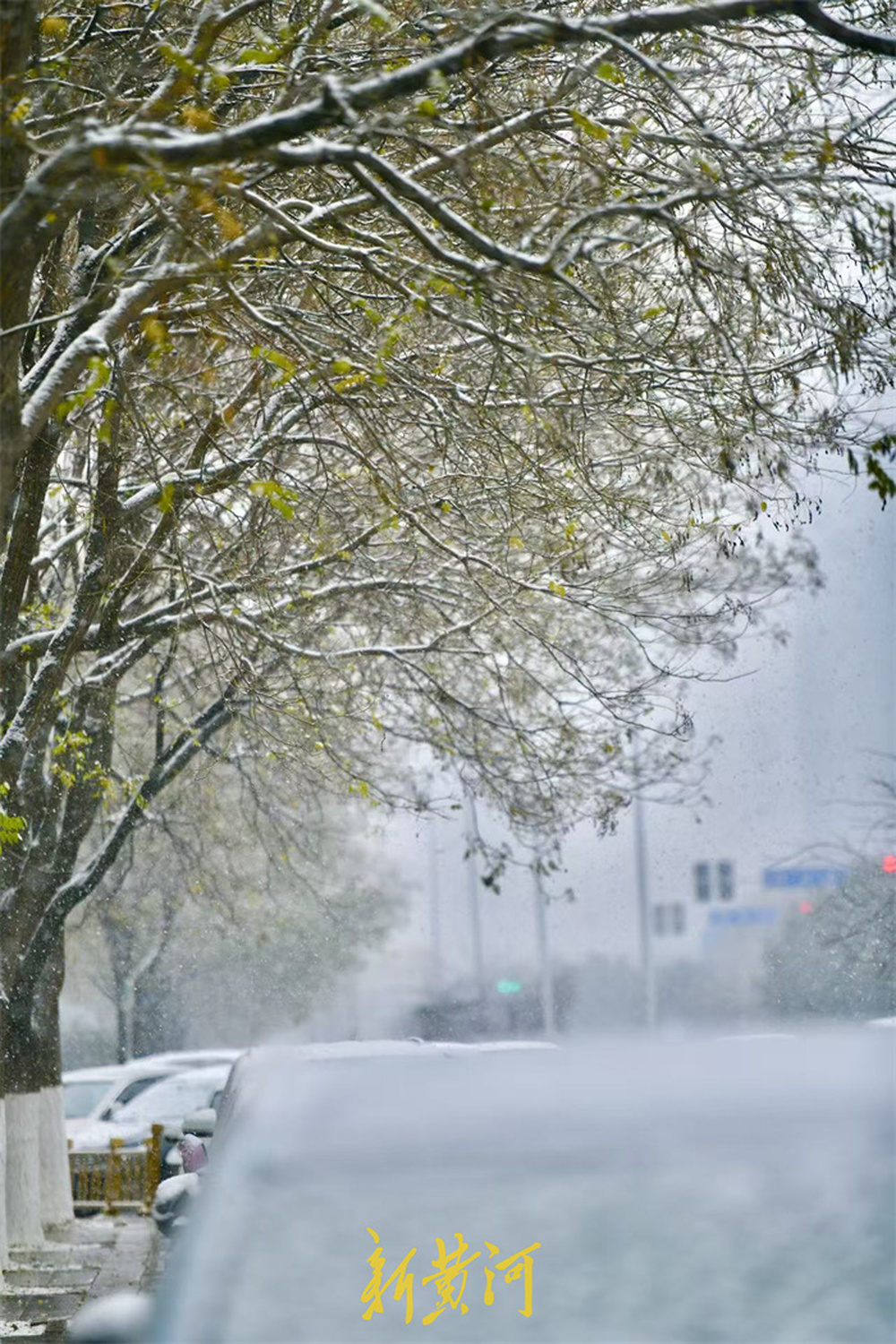 12月12日午后,济南迎来入冬以后首场降雪。纷飞的雪花簌簌落下,很快给地面、车辆上盖了一层白花花的 “绒毯”,整座城市都笼罩在一片朦胧的雪雾之中。