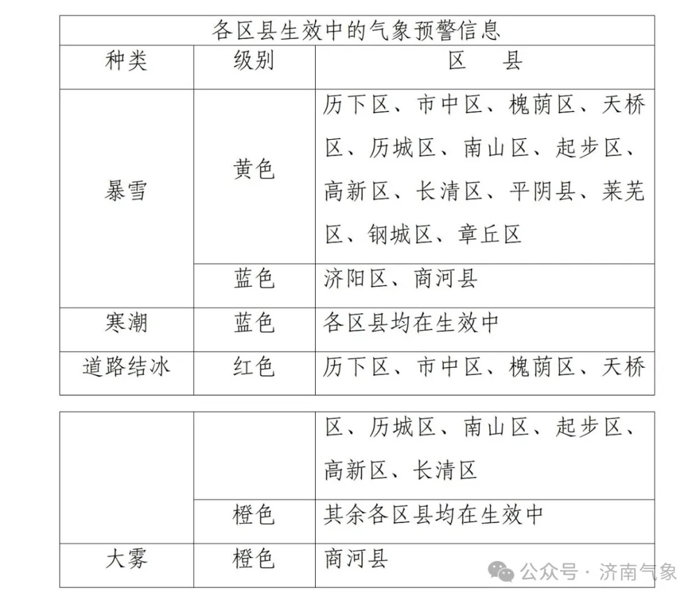 12月12日21时,济南市气象台发布道路结冰红色预警信号: