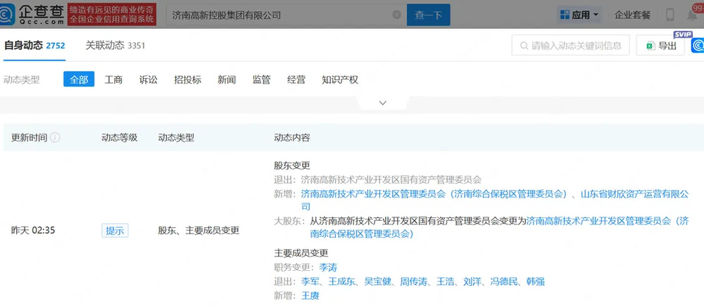 天眼查信息显示,近日,济南高新控股集团有限公司(以下简称“济高控股”)发生多项变更,其中原股东济南高新技术产业开发区国有资产管理委员会退出,新股东济南高新技术产业开发区管理委员会(济南综合保税区管理委员会)与山东省财欣资产运营有限公司加入。变更后,济高控股由国有独资变为国有控股。