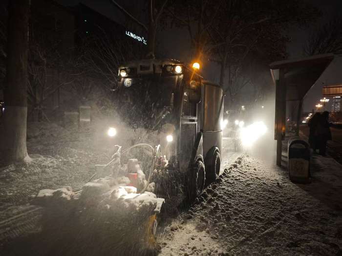 随后,记者来到龙湖济南西城天街旁的经十路。主干道上,大型除雪车正反复作业,路面鲜有积雪,车辆往来畅通无阻;辅路上,多辆小型除雪车同步开展清扫工作。槐荫区城管局环卫管护中心工作人员魏云帅向新黄河记者介绍:“12月12日下午4点起,大小除雪车就已在各主干道及辅路投入作业,我们要确保道路全天候畅通,保障车辆和行人安全。”他表示,除雪工作将持续至夜间,为次日早高峰通行做好充分准备。