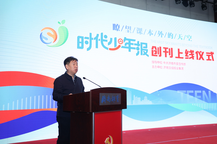 济南市委宣传部二级巡视员赵民在致辞中强调,《时代少年报》的诞生是顺应时代大势、回应社会所需的创新之举,是为新时代少年儿童精心打造的一份精神文化礼物。他指出,《时代少年报》应坚持正确舆论导向和办报方向,深入研究青少年成长规律,真正办成青少年真心喜爱、有益成长、励志奋发的优质精神读物,为培养担当民族复兴大任的时代新人贡献媒体力量。