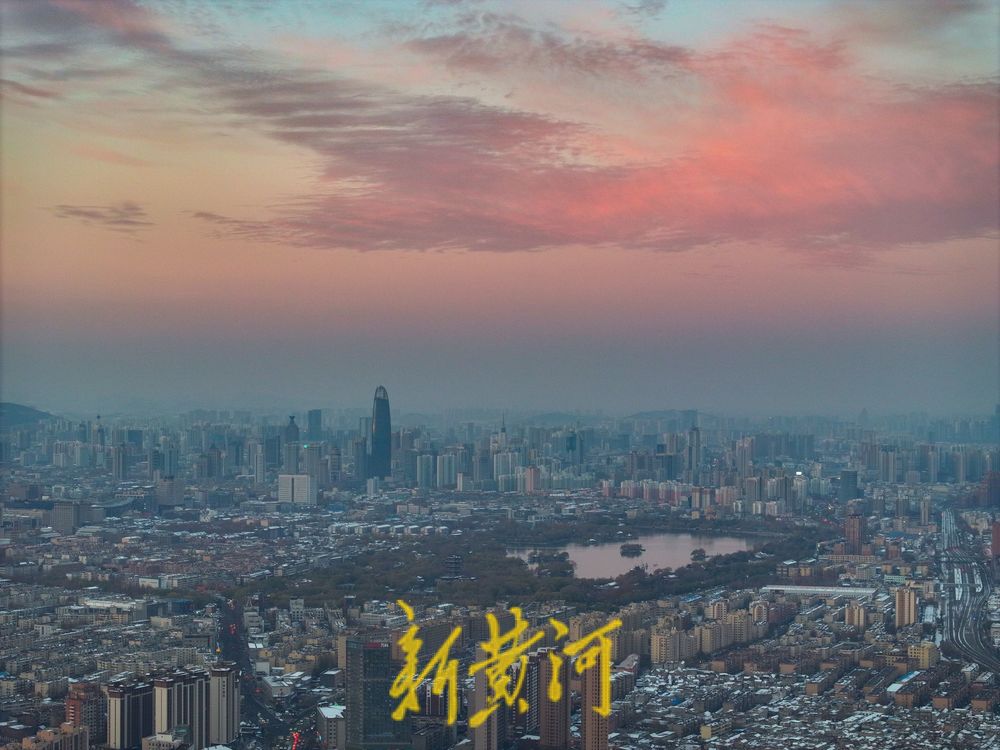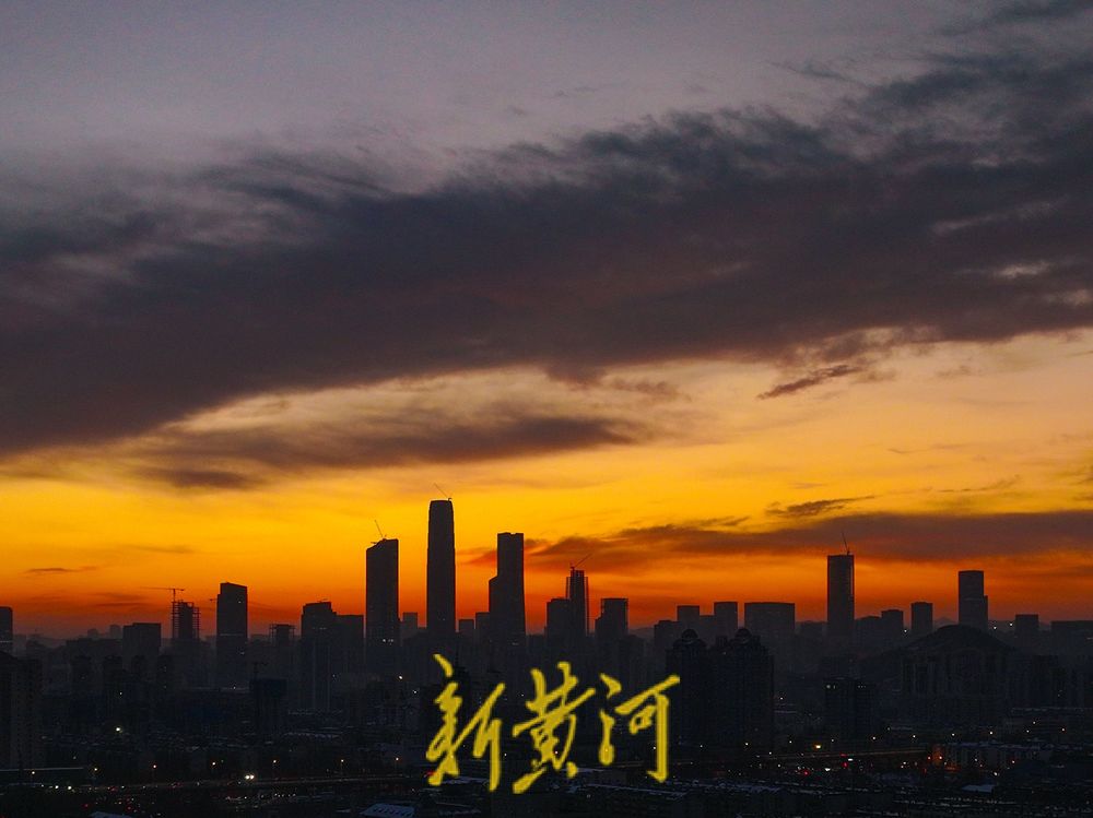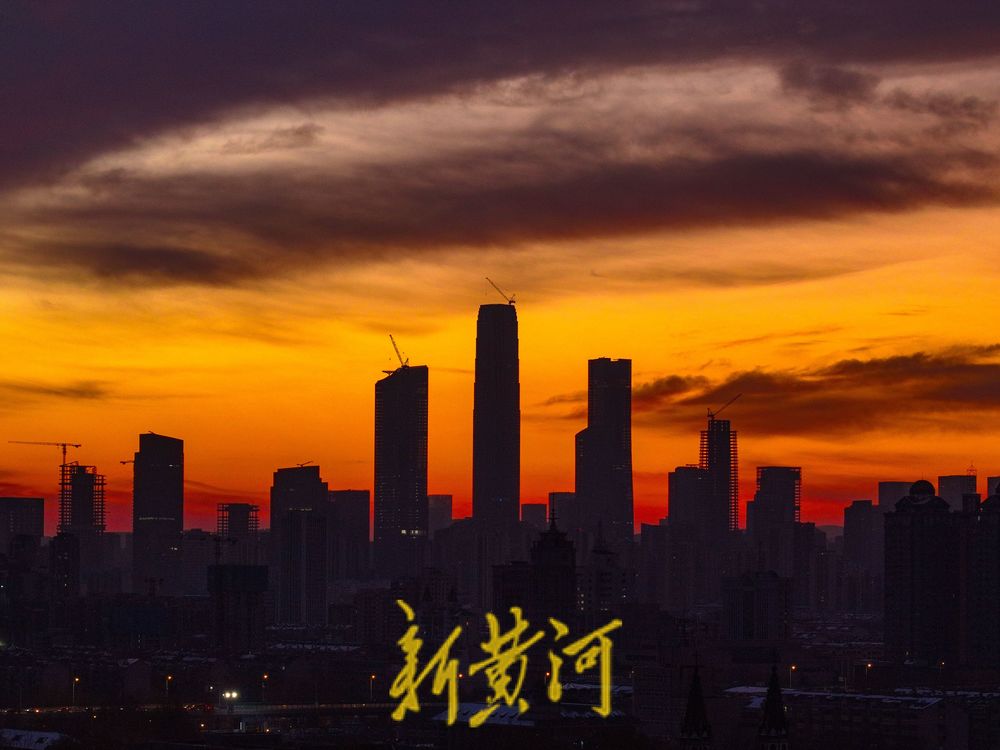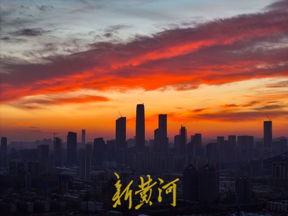 这片磅礴的霞光与中央商务区现代楼群交相辉映,整座城市沐浴在温暖红彤的光晕之中。