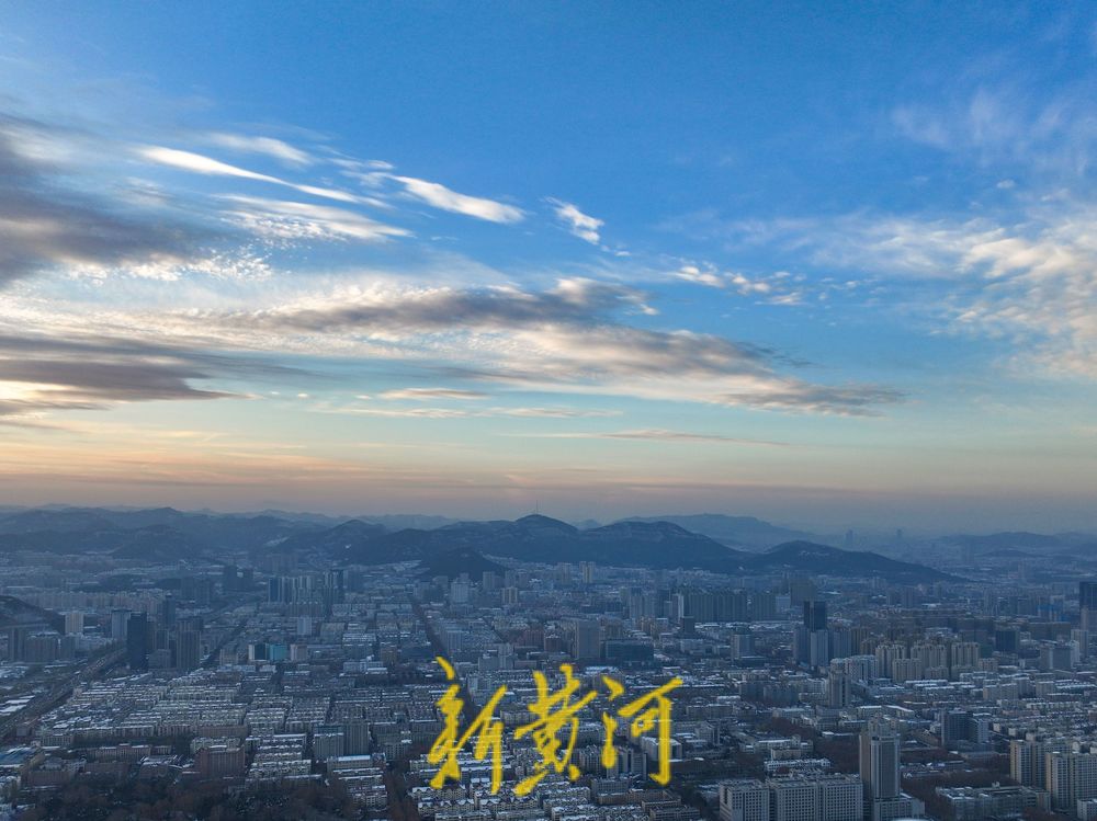 12月15日清晨,雪后济南空气清新,一场绚丽的朝霞火烧云闪现济南上空。日出时分,漫天云霞如火燃烧,瞬息万变,将天际染成一片炽烈的金红。