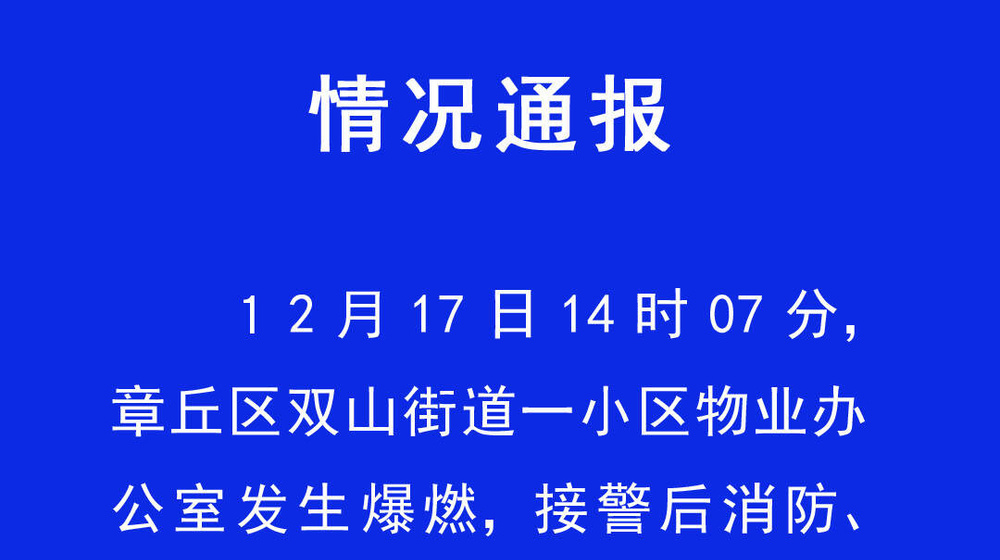 章丘一小区物业办公室发生爆燃,官方通报:多部门赶往现场处置,事故原因正在调查