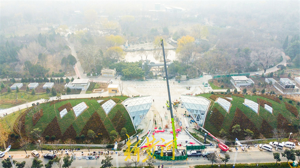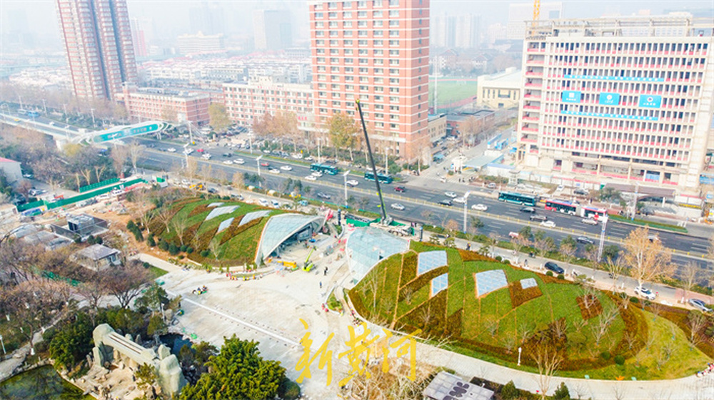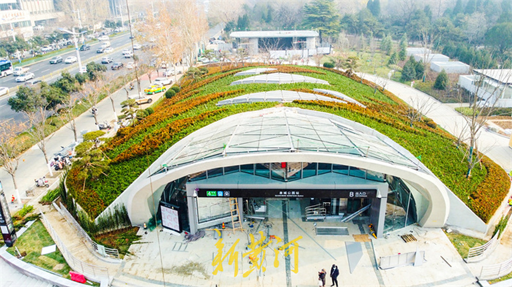 最为引人注目的是车站出入口的设计,其双曲薄壳钢筋混凝土结构与连续拱形造型的主体已建成。拱形出入口上方覆盖的玻璃安装工作基本完成,而顶部的绿化施工也已接近尾声。施工方在拱形结构上方精心种植了多种苗木,组成美观的菱形图案,犹如为车站披上了一身“绿装”。这一设计巧妙地将车站建筑与相邻的泉城公园自然景观融合为一体,实现了交通功能与城市生态的和谐统一。