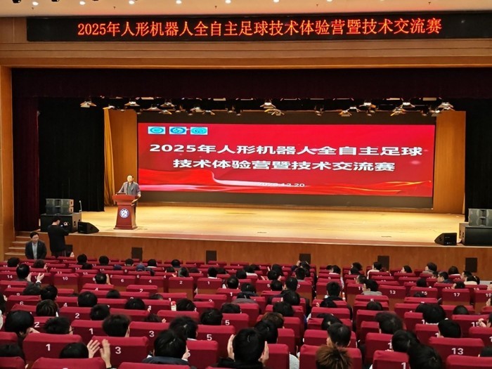 12月20日上午,2025年人形机器人全自主足球技术体验营暨技术交流赛开幕式在山东商业职业技术学院隆重举行。