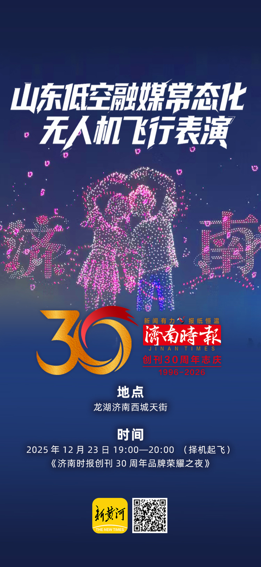 据活动主办方透露,22日的“小红花”主题表演将深度融合泉城特色,济南西站、泉标、趵突泉、锦鲤等标志性元素将以流光溢彩的影像形式呈现,与温馨可爱的“小红花”图案交相辉映,定格与济南的浪漫邂逅瞬间。而23日的专场表演,则将通过无人机光影矩阵,生动展现《济南时报》30年来的创新发展历程,传递对未来媒体融合发展的期待与展望,为市民奉上兼具情怀与视觉冲击力的文化大餐。