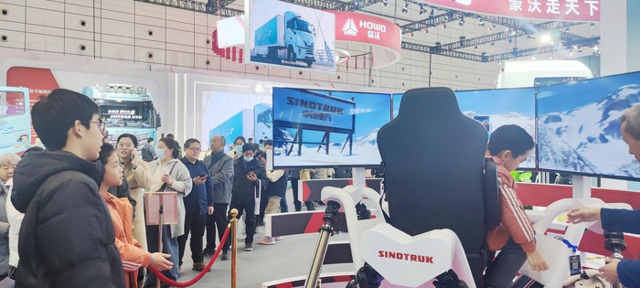 在“超级卡车”展区,一辆辆凝聚匠心与科技的整车吸引众多观众打卡。公众不仅能近距离观看和体验重汽驾驶室,更可通过模拟驾驶体验真实驾控。两处模拟驾驶体验区备受孩童青睐,整个上午排队人员络绎不绝。观众可体验城市道路、高速公路、雪地、非铺装道路等虚拟场景,这种探索体验,让观众对重汽智能驾驶技术有了更深入的了解。11岁的金宗成、金宗佑兄弟俩轮番排队体验,他们告诉新黄河记者:“父母为重汽员工,通过这次活动了解了父母的工作内容,体验了重汽卡车司机的驾驶场景,感觉很逼真,很刺激。”