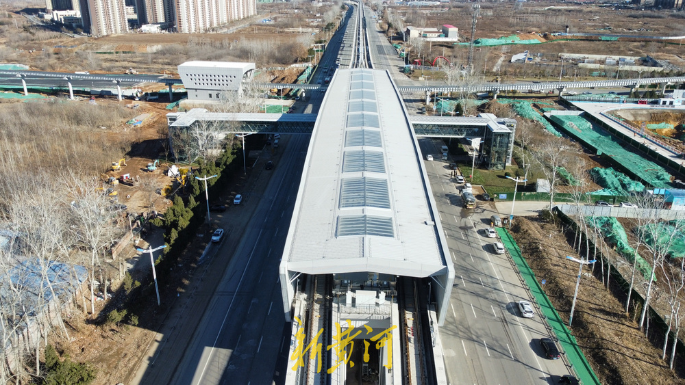 线路途经的经十东路春博路站,将成为与济南云巴系统的重要换乘枢纽。该站实现了南北向云巴与东西向地铁8号线的便捷交会,进一步织密了区域交通网络。目前,各高架车站的站名牌、引导标识均已安装完成,出入口过街天桥、站前广场及周边绿化等配套设施也已全部建设就绪。