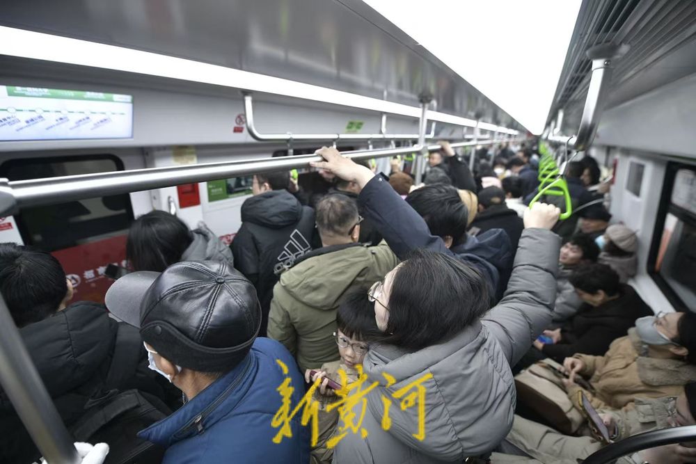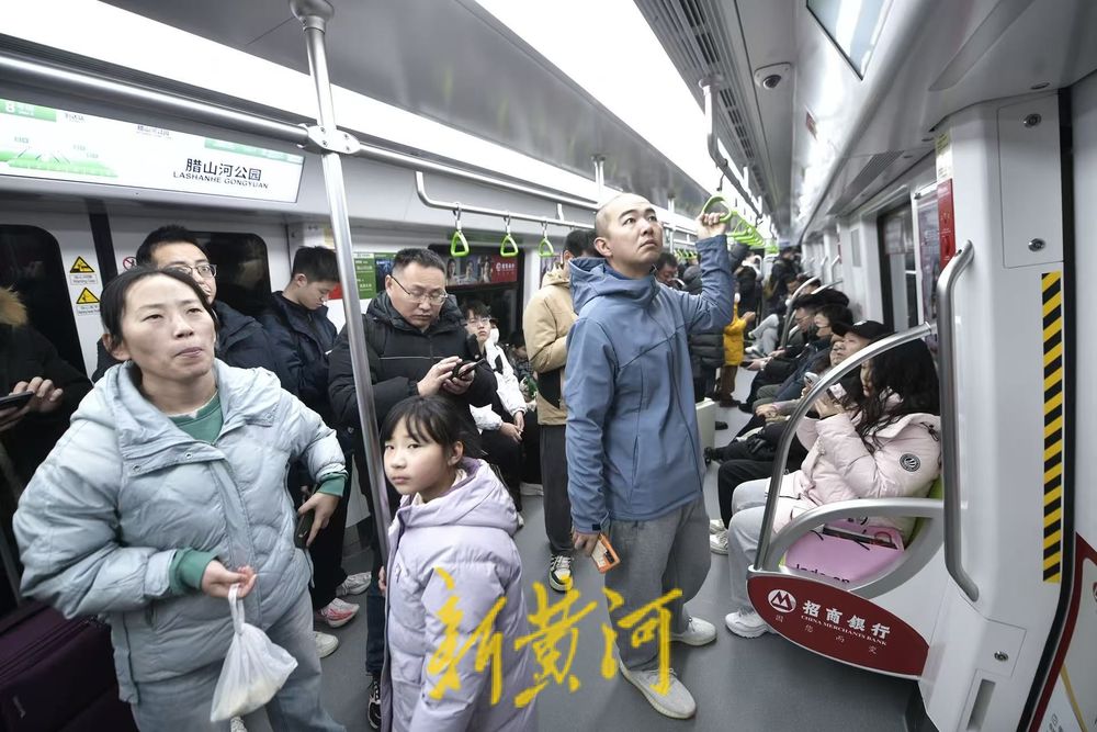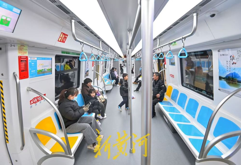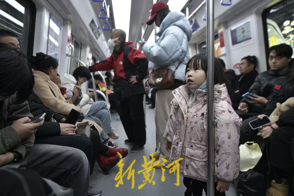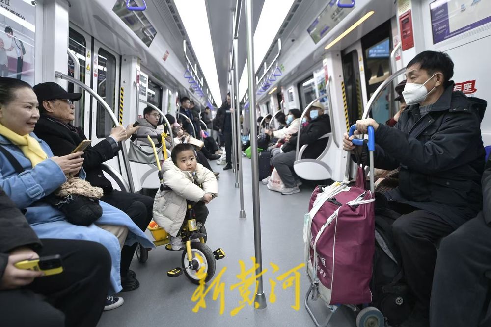 地铁4号线第一医科大学开往清源大街的列车,途经南辛庄站时,车厢内座无虚席,不少老人和孩子在家人的陪伴下前来体验。