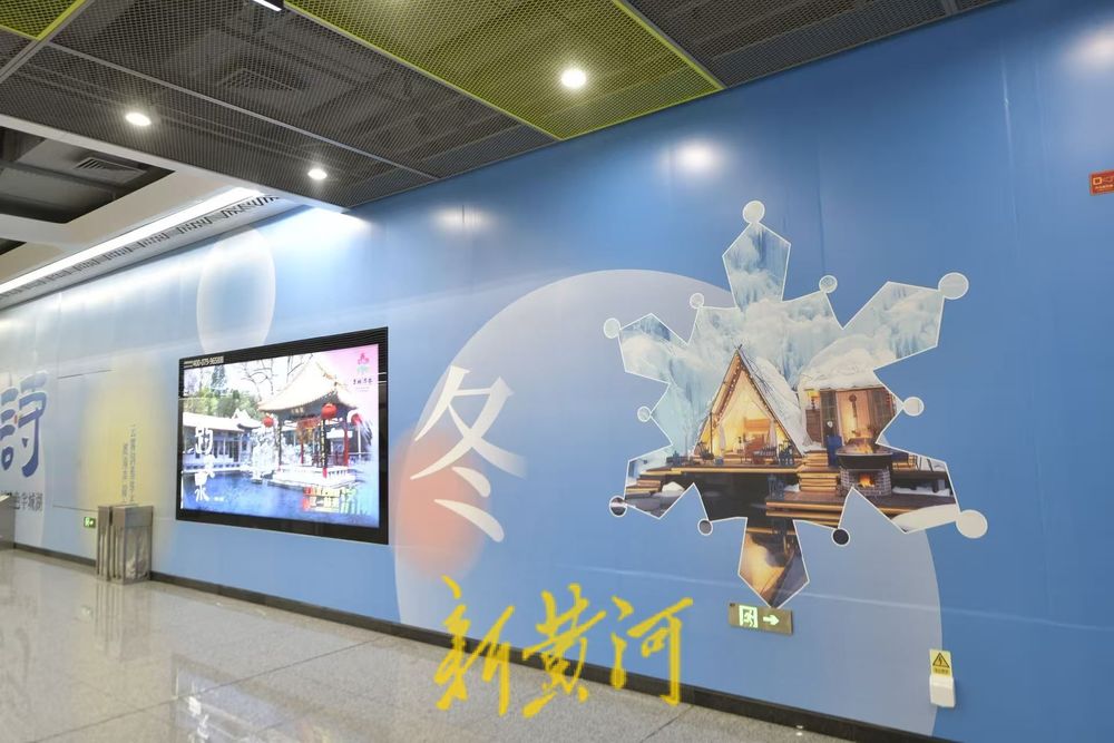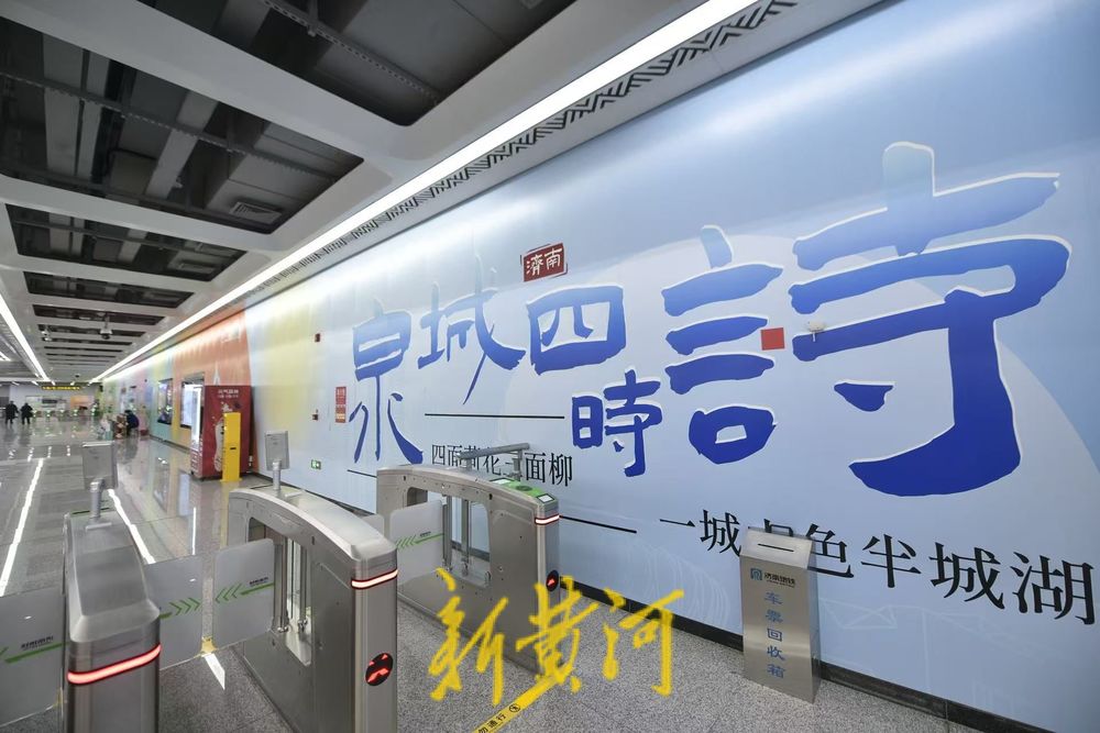 新黄河记者来到地铁4号线最西端的第一医科大学站,站内以“泉城四季”为主题,通过一幅长达约50米的巨幅喷绘艺术墙,将济南的春夏秋冬生动绘入地下空间,让乘客在步履匆匆间感受城市诗意。